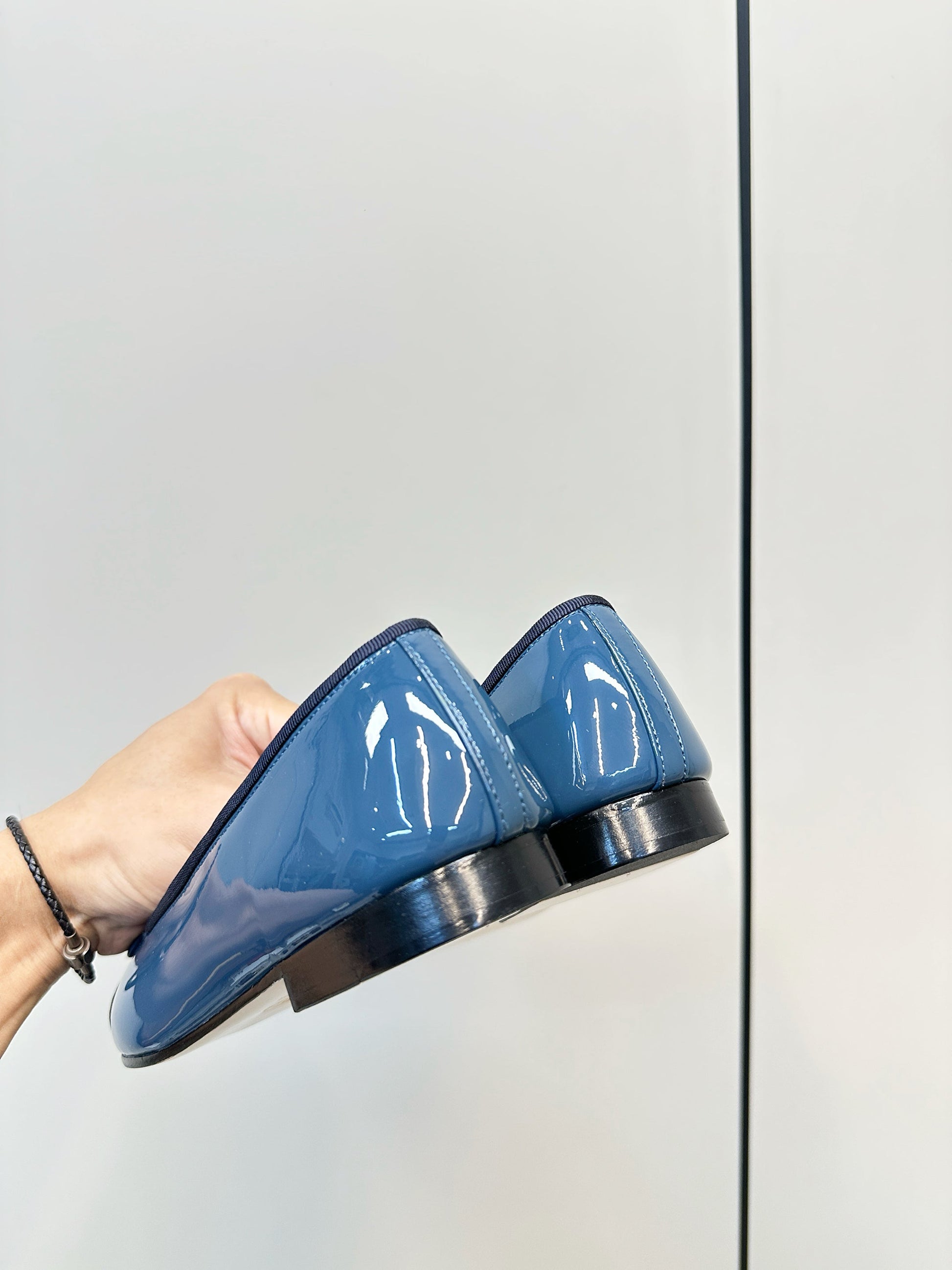 Chanel 25 Ballet Flat Blue Black Patent Leather 469254