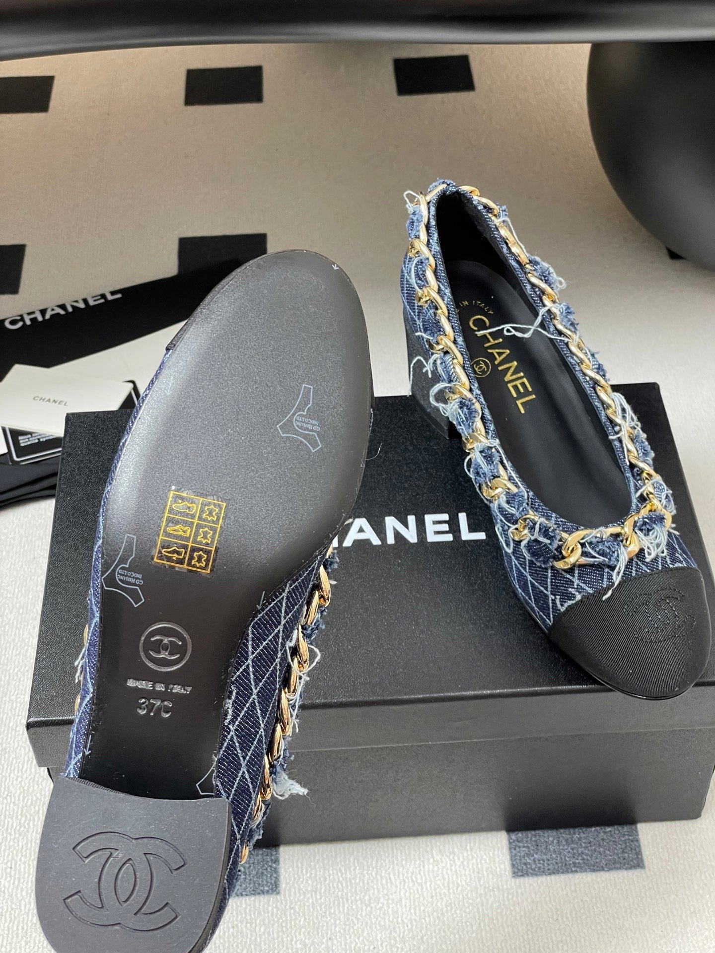 Chanel 25A 55mm Pump Big Chain Double C Dark Blue Denim Sheepskin 393811