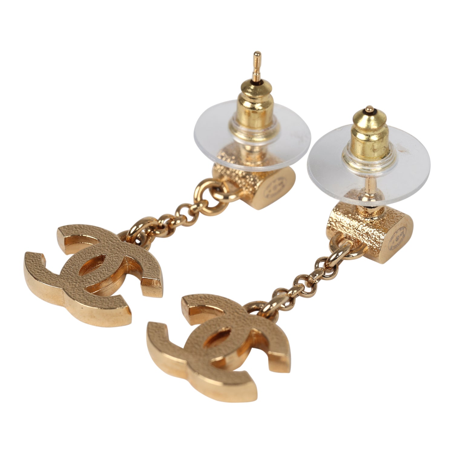 Chanel CC Dangle Earrings Black & White Enamel Gold Tone Hardware