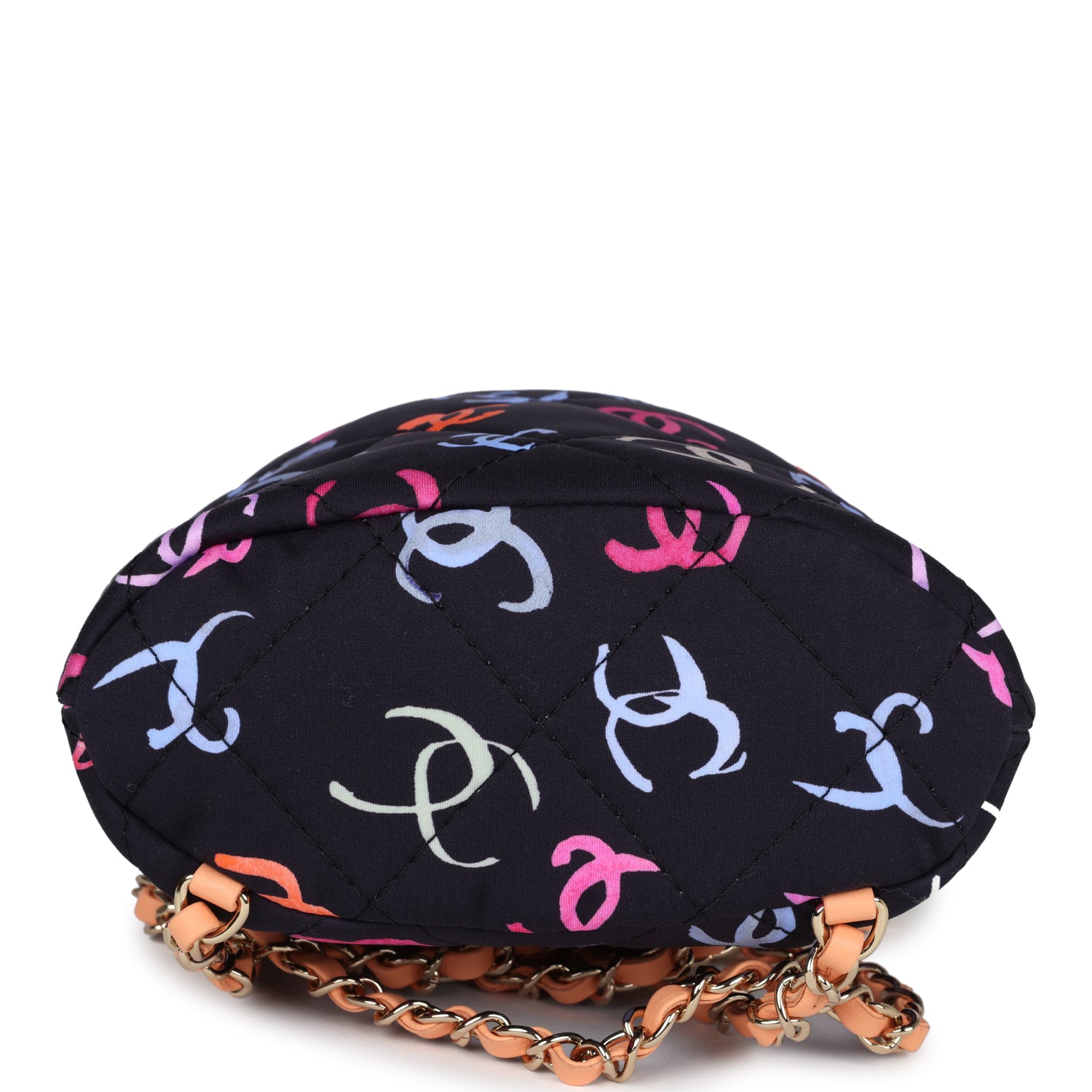 Chanel Medium CC Drawstring Backpack Multicolored Printed Fabric Light Gold Hardware