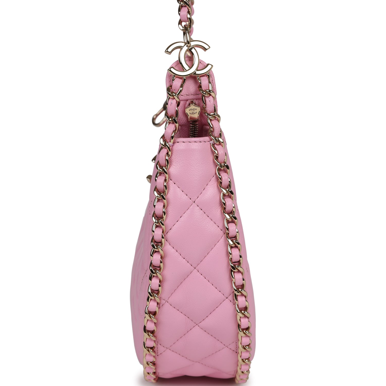 Chanel Small Chain Around Hobo Pink Lambskin Gold Hardware