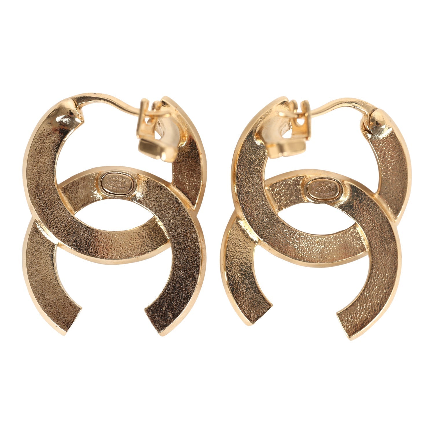 Chanel Crystal CC Earrings Black Enamel & Gold Hardware