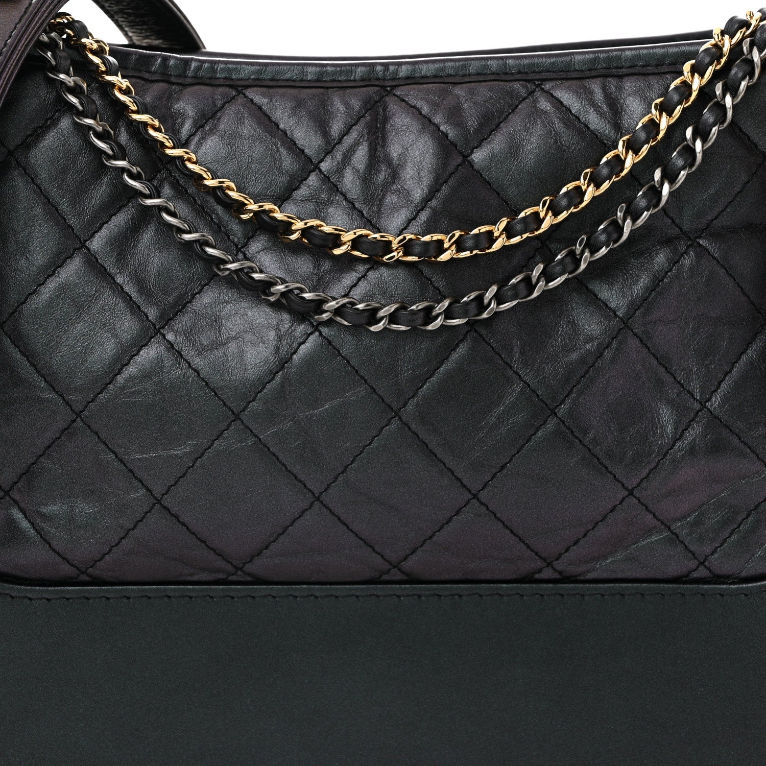 Iridescent Aged Calfskin Quilted Medium Gabrielle Hobo Black