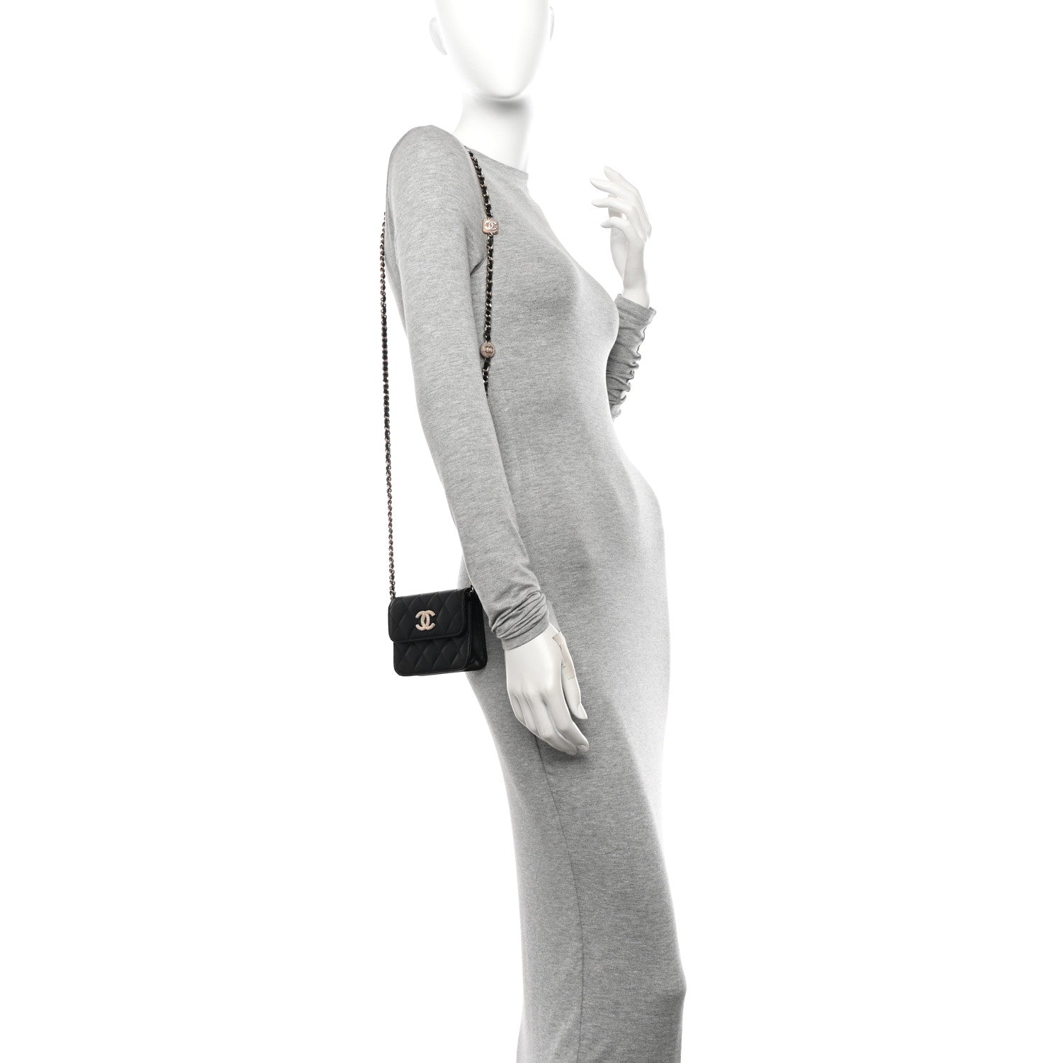 Lambskin Quilted Crystal CC Charm Clutch With Chain Black