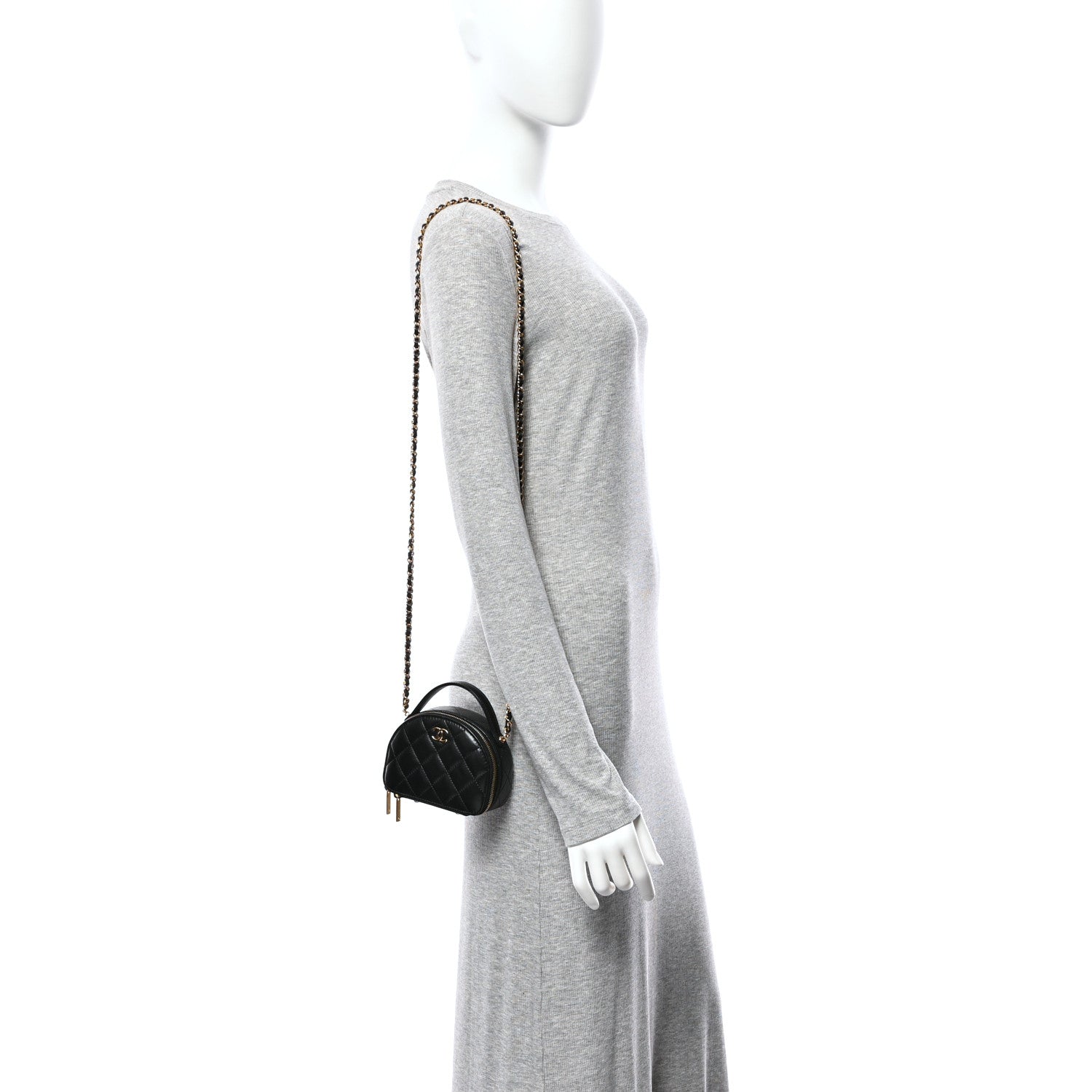 Lambskin Quilted Mini Chic Riviera Top Handle Vanity Case Black