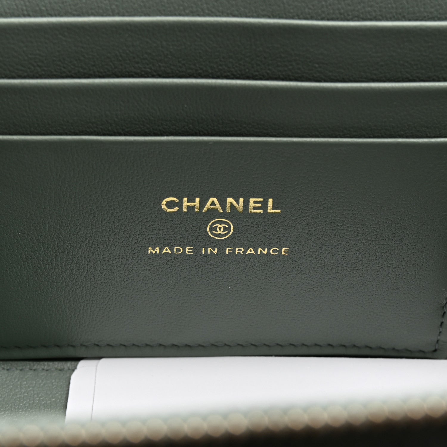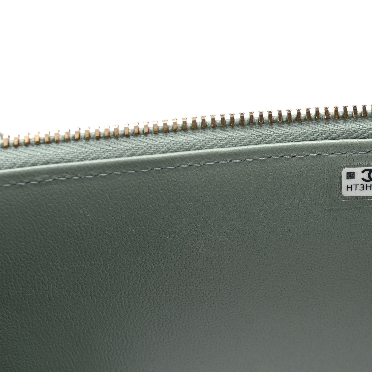 Lambskin Quilted Small Top Handle Vanity Case With Chain Light Blue
