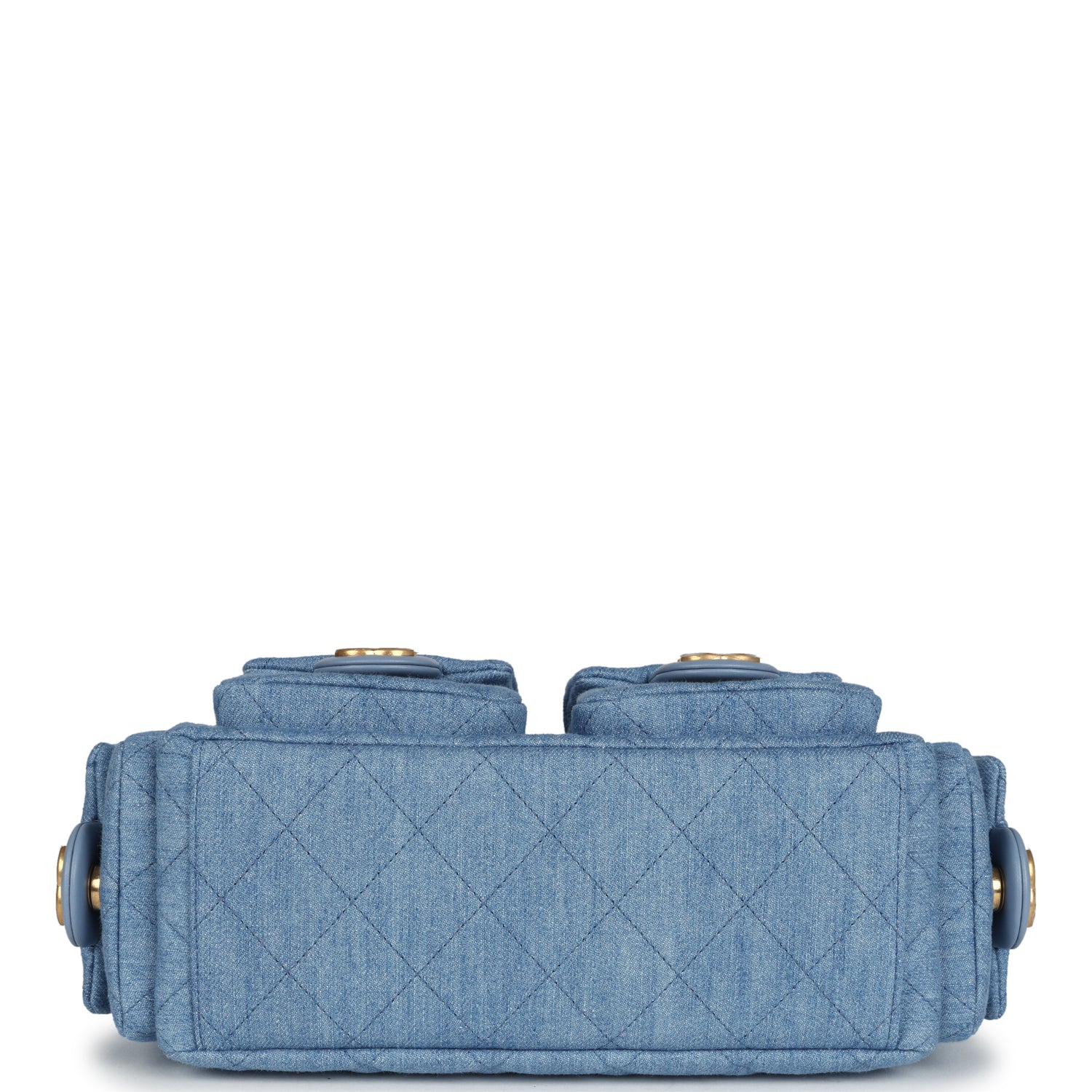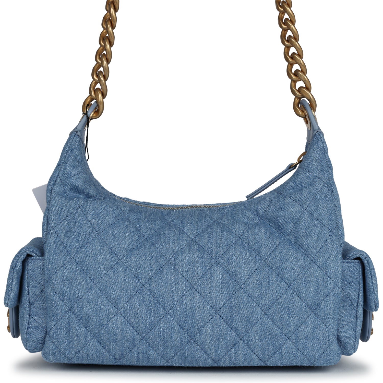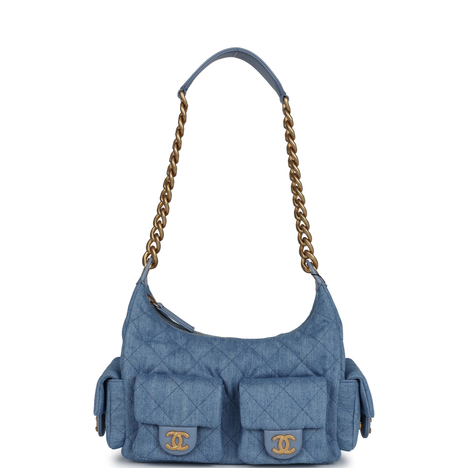 Chanel Large Cargo Hobo Bag Light Blue Washed Denim Brushed Gold Hardware