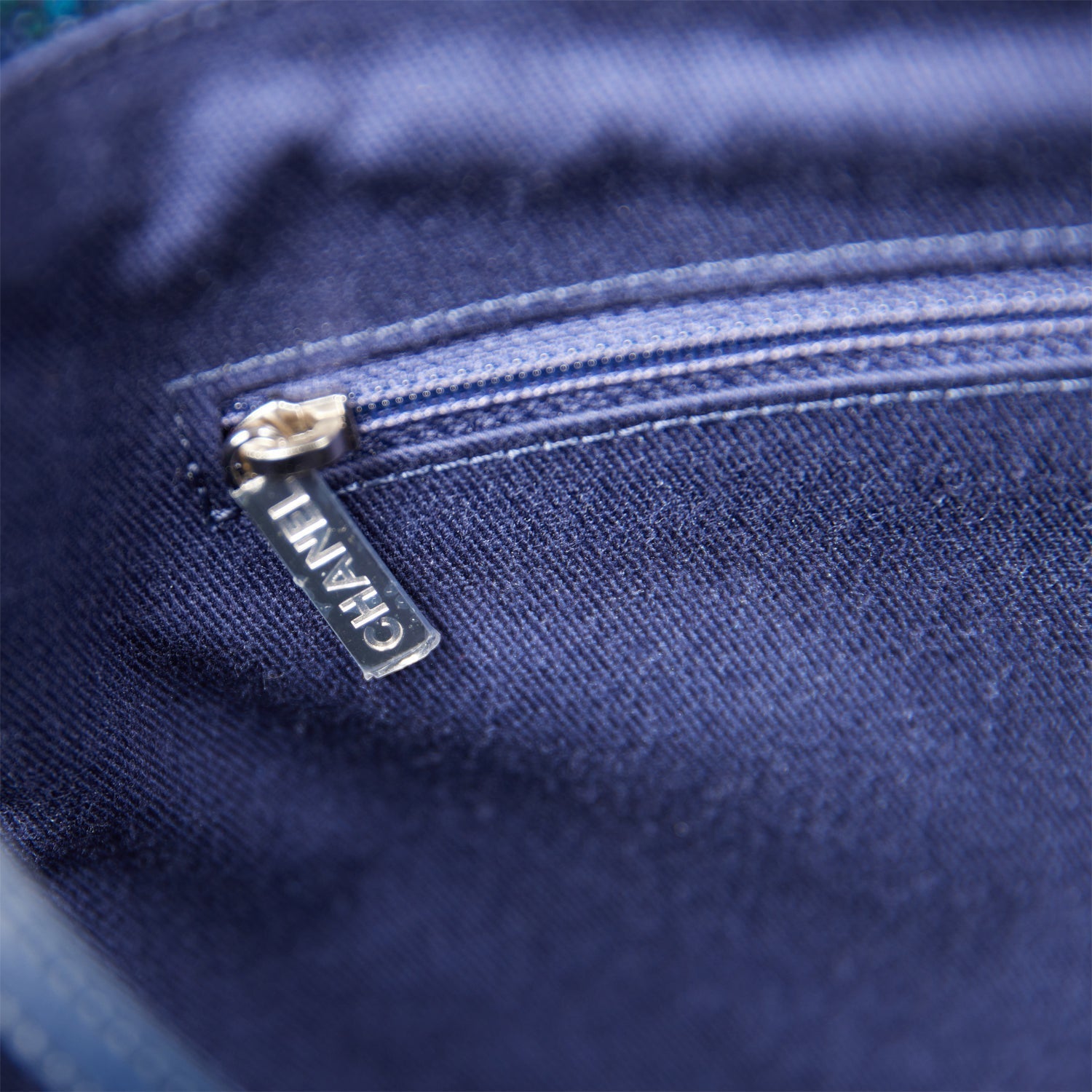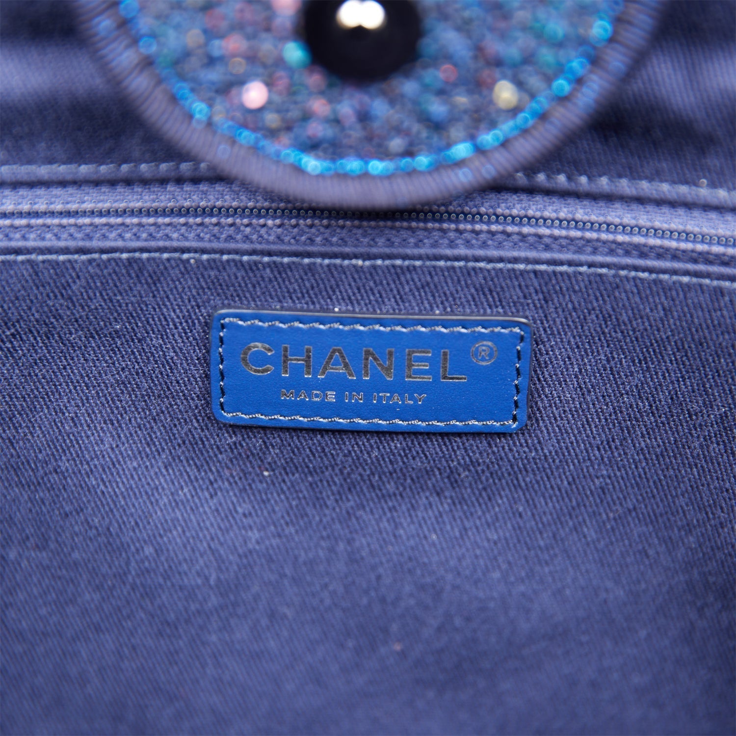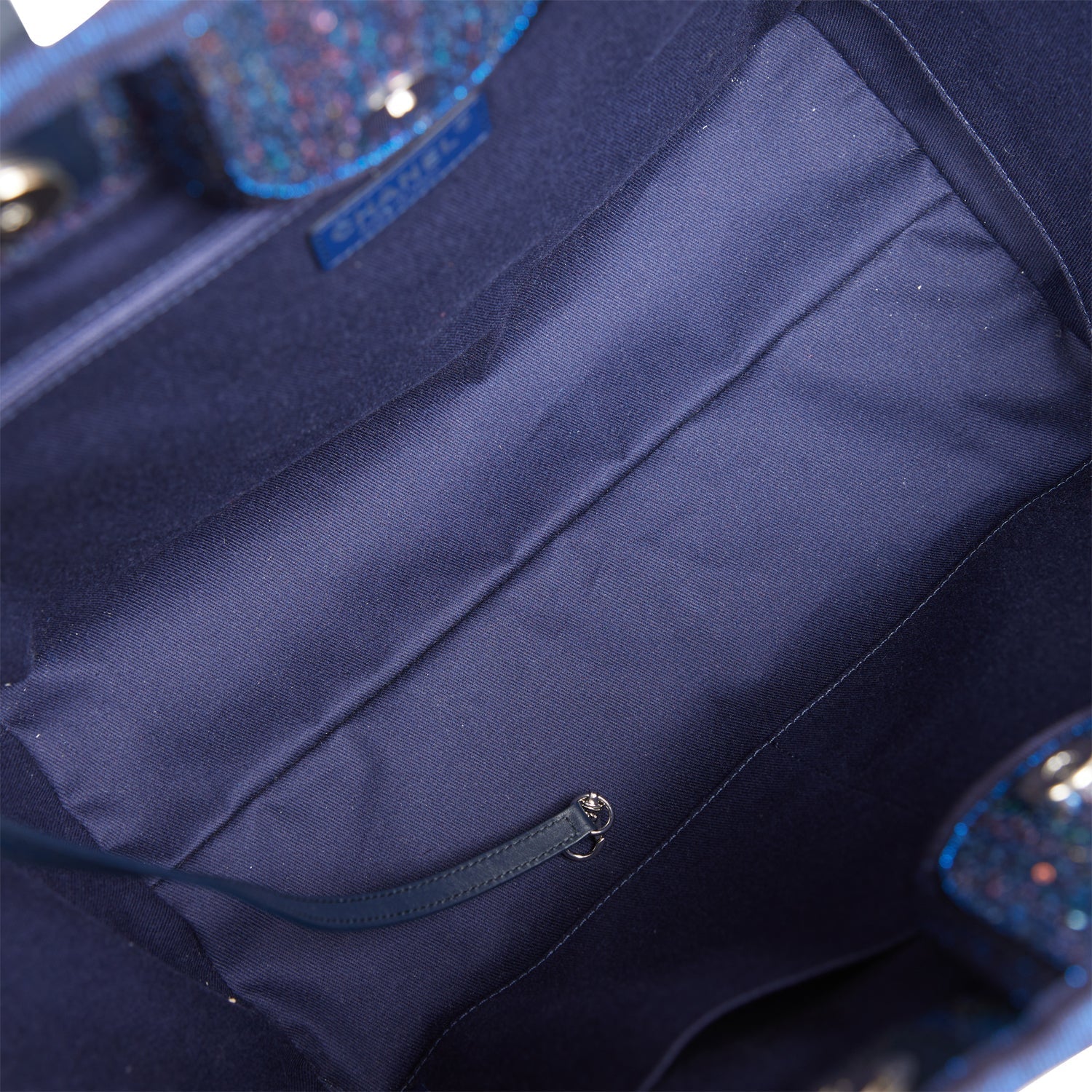 Chanel Large Deauville Shopping Tote Blue Sequin Boucle Silver Hardware