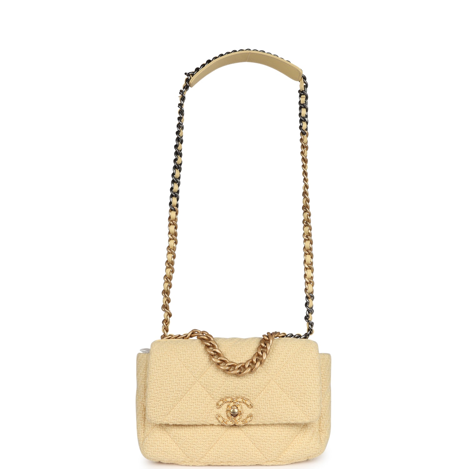 Chanel Medium 19 Flap Bag Light Yellow Wool Mixed Metal Hardware