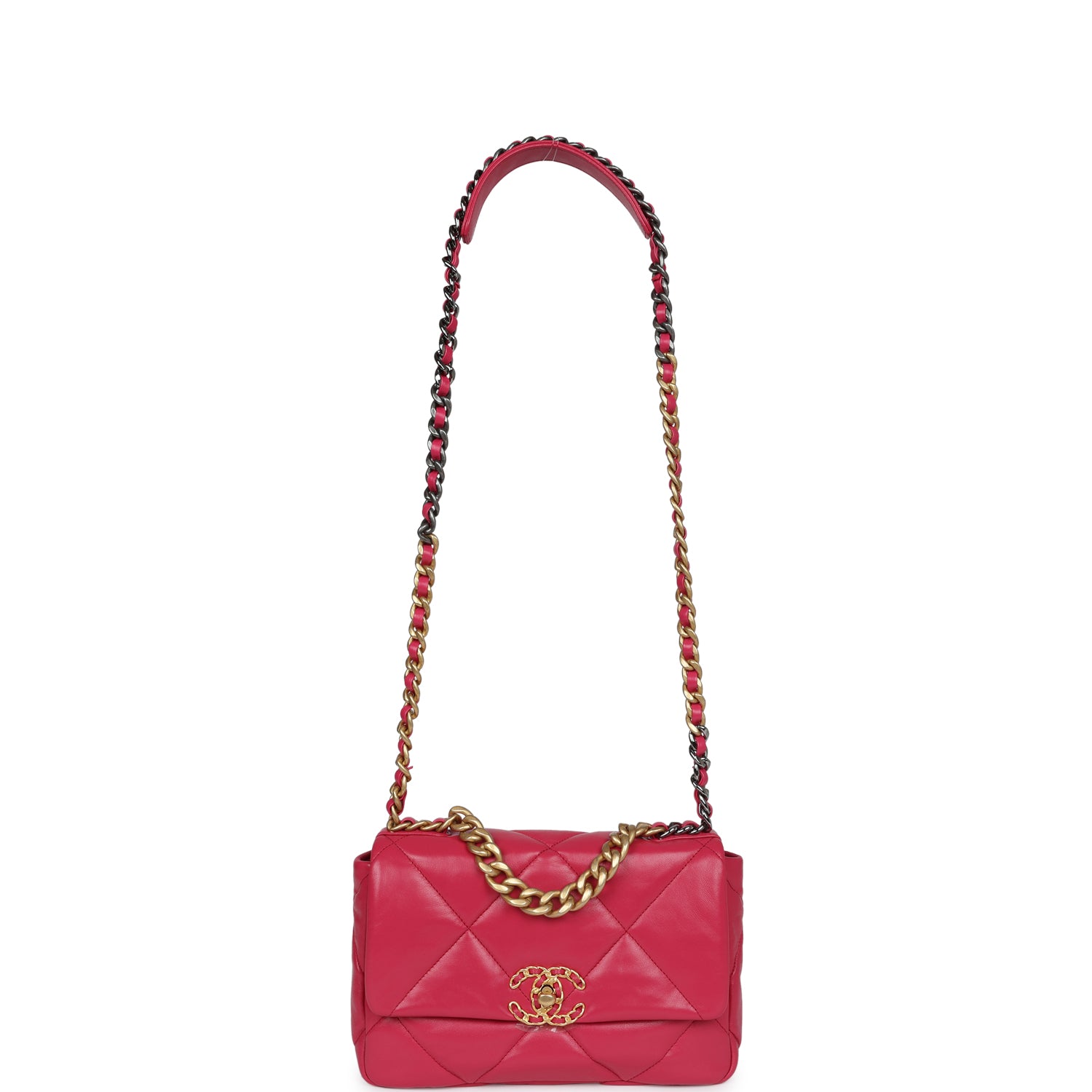 Chanel Medium 19 Flap Dark Pink Lambskin Mixed Metal Hardware