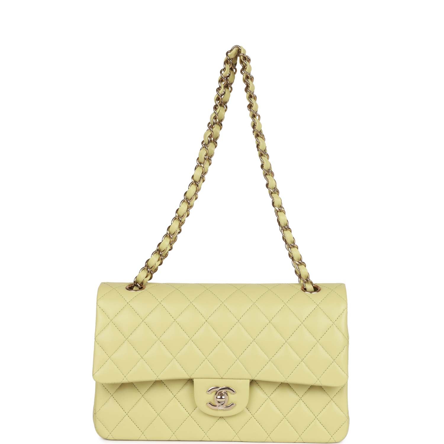 Chanel Medium Classic Double Flap Bag Light Green Lambskin Light Gold Hardware