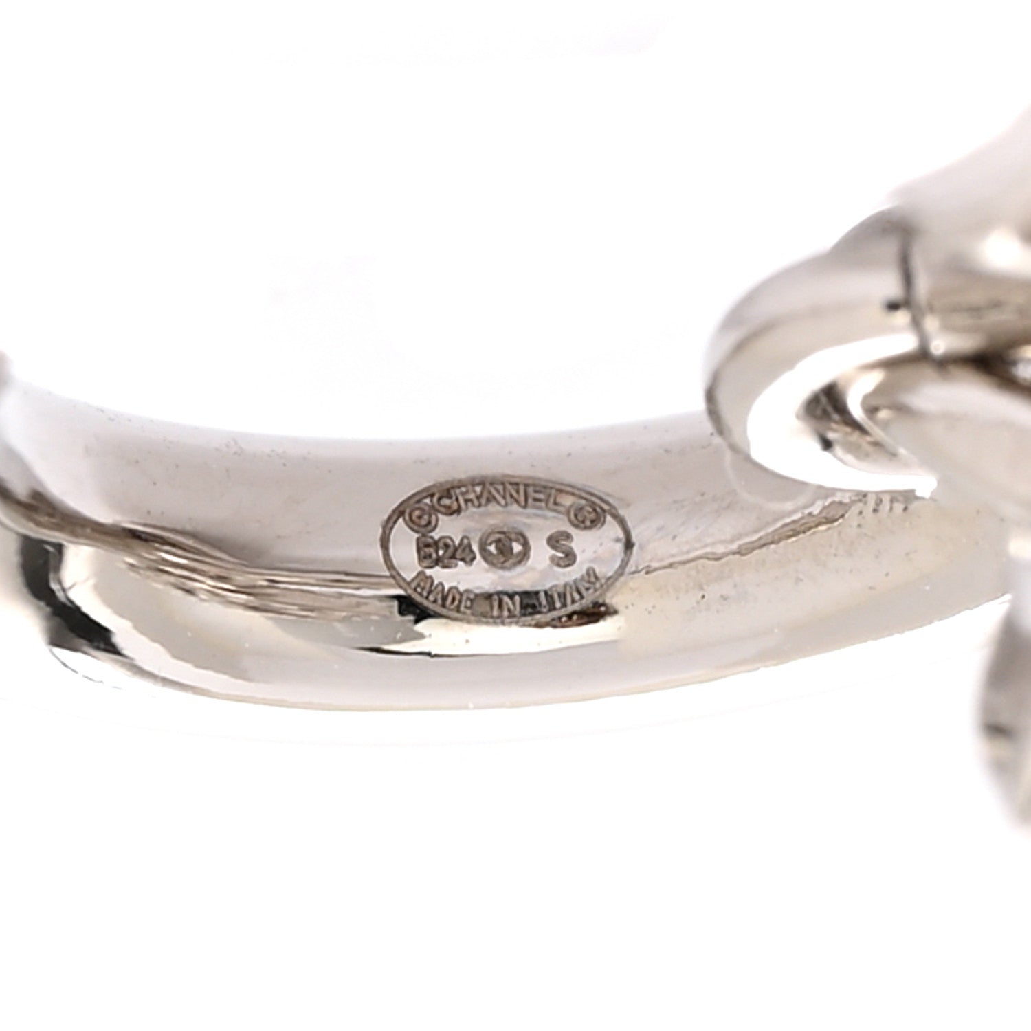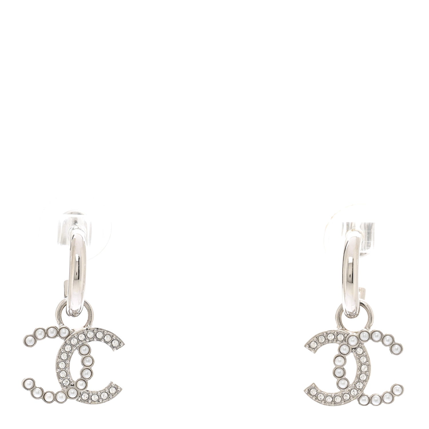 Metal Pearl Crystal CC Drop Earrings Silver