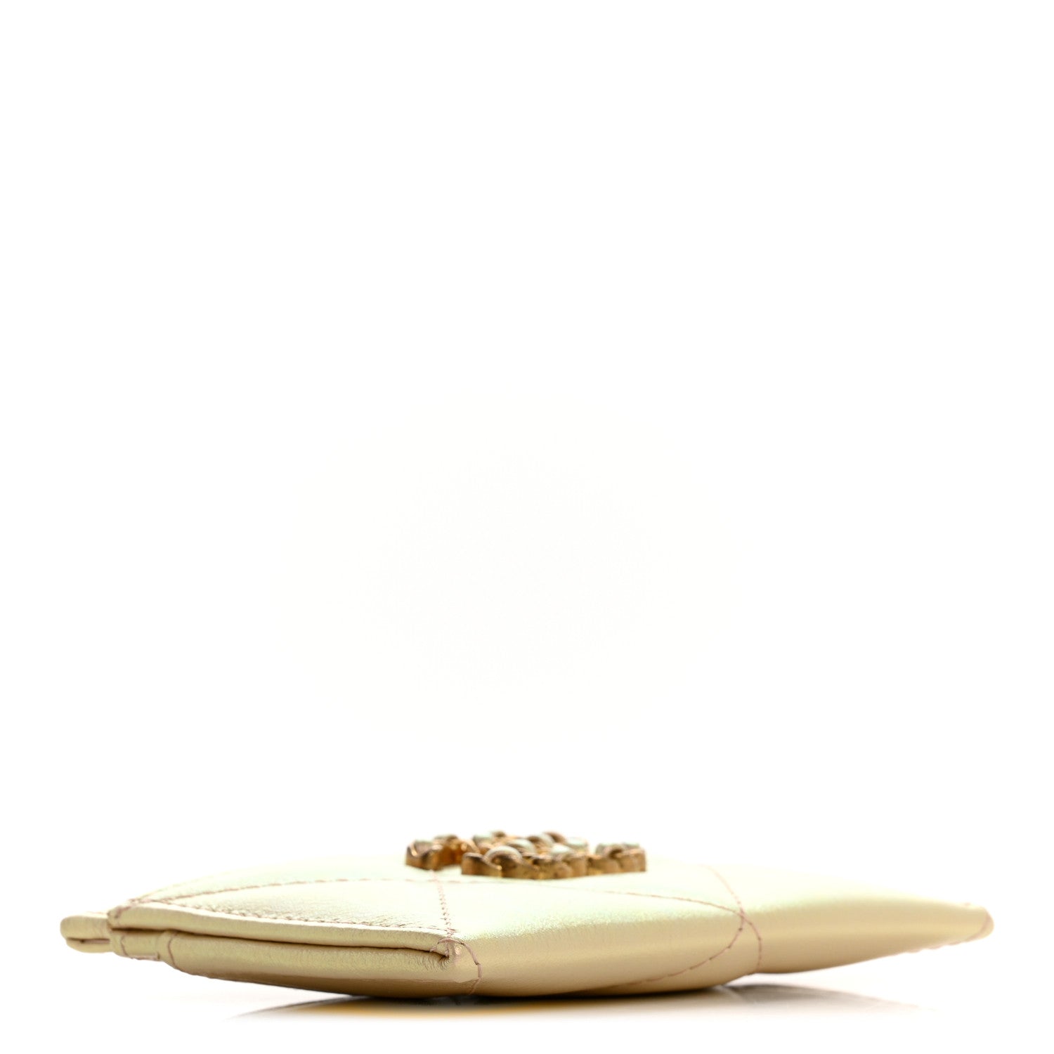 Metallic Goatskin Quilted Chanel 19 Card Holder Gold