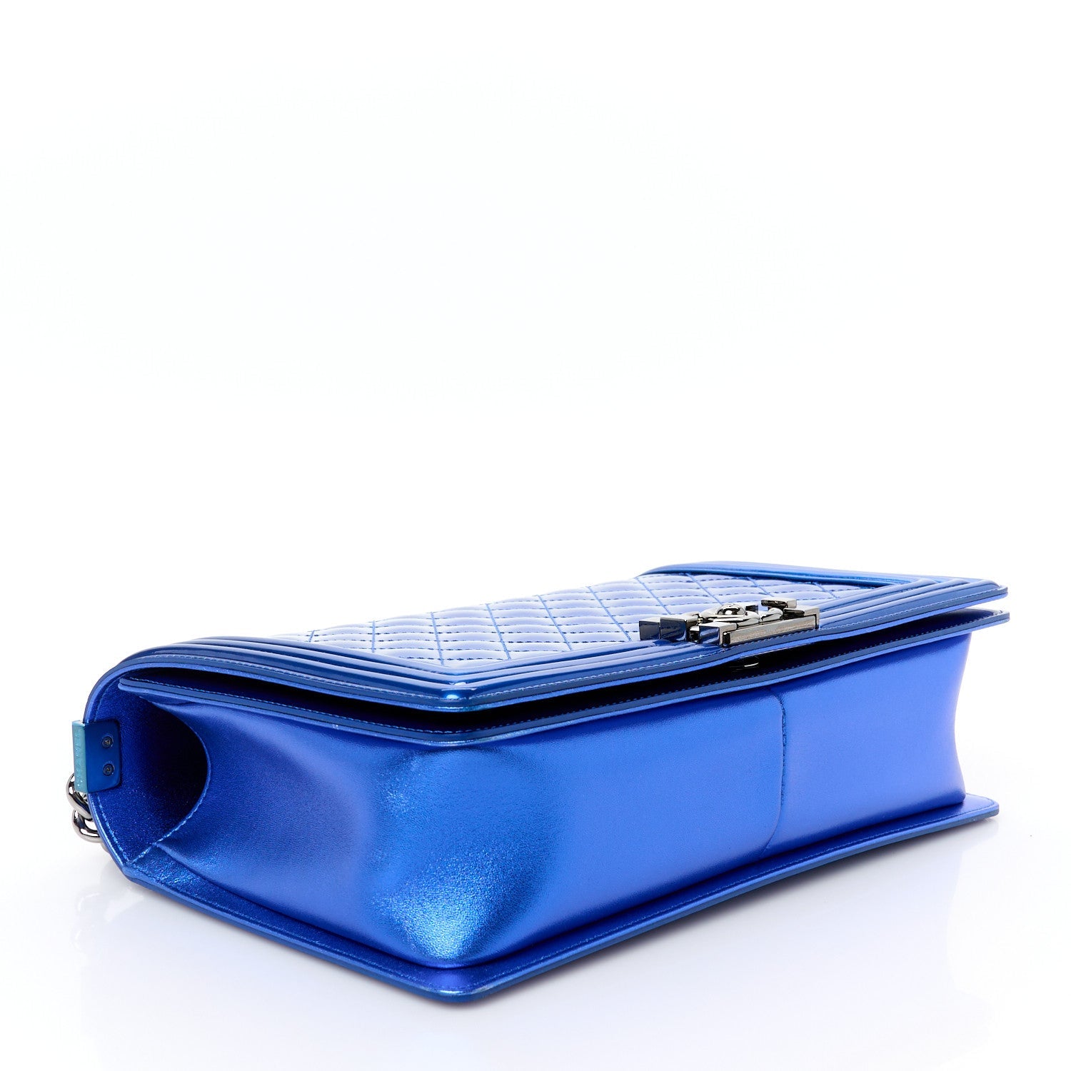 Metallic Patent Quilted New Medium Boy Flap Blue