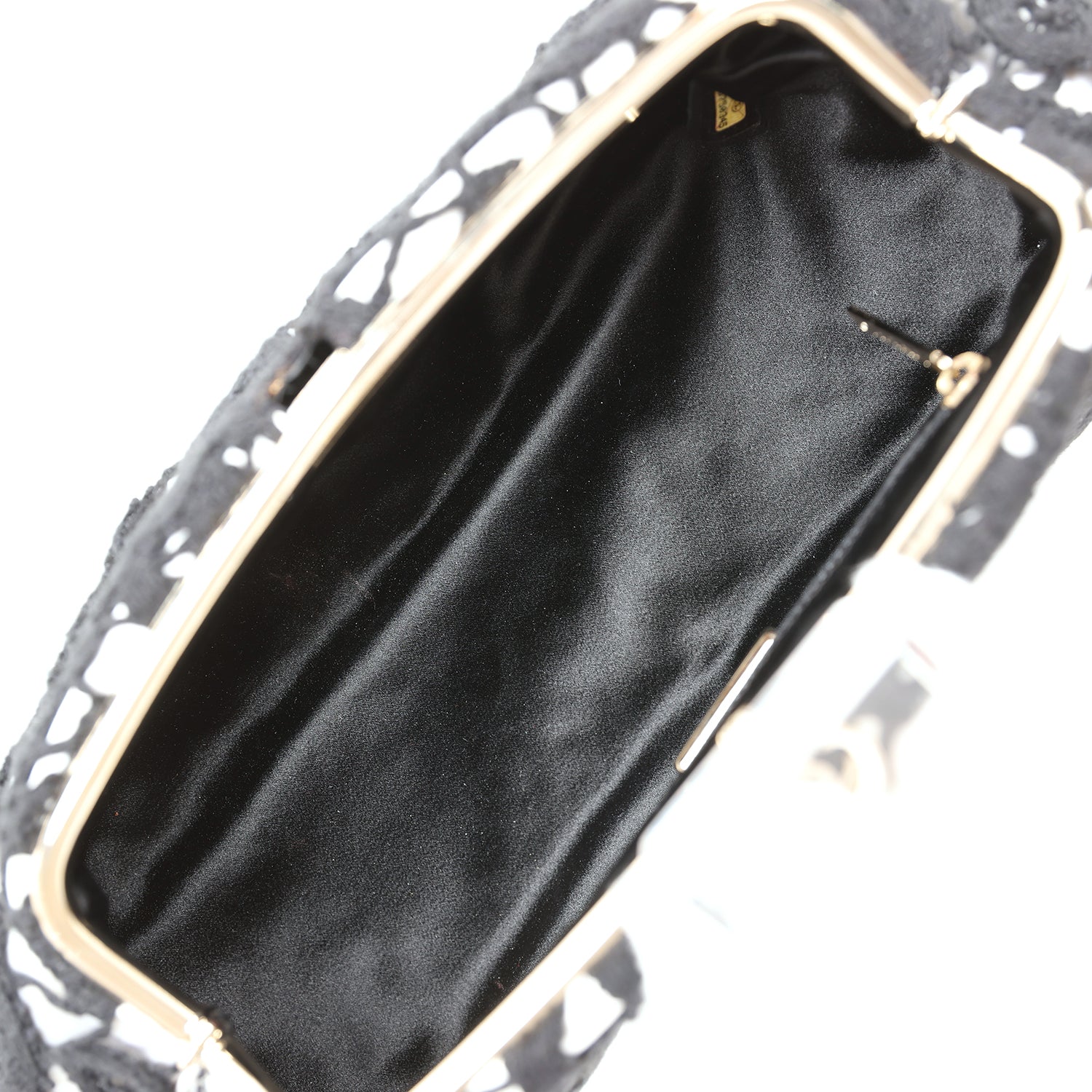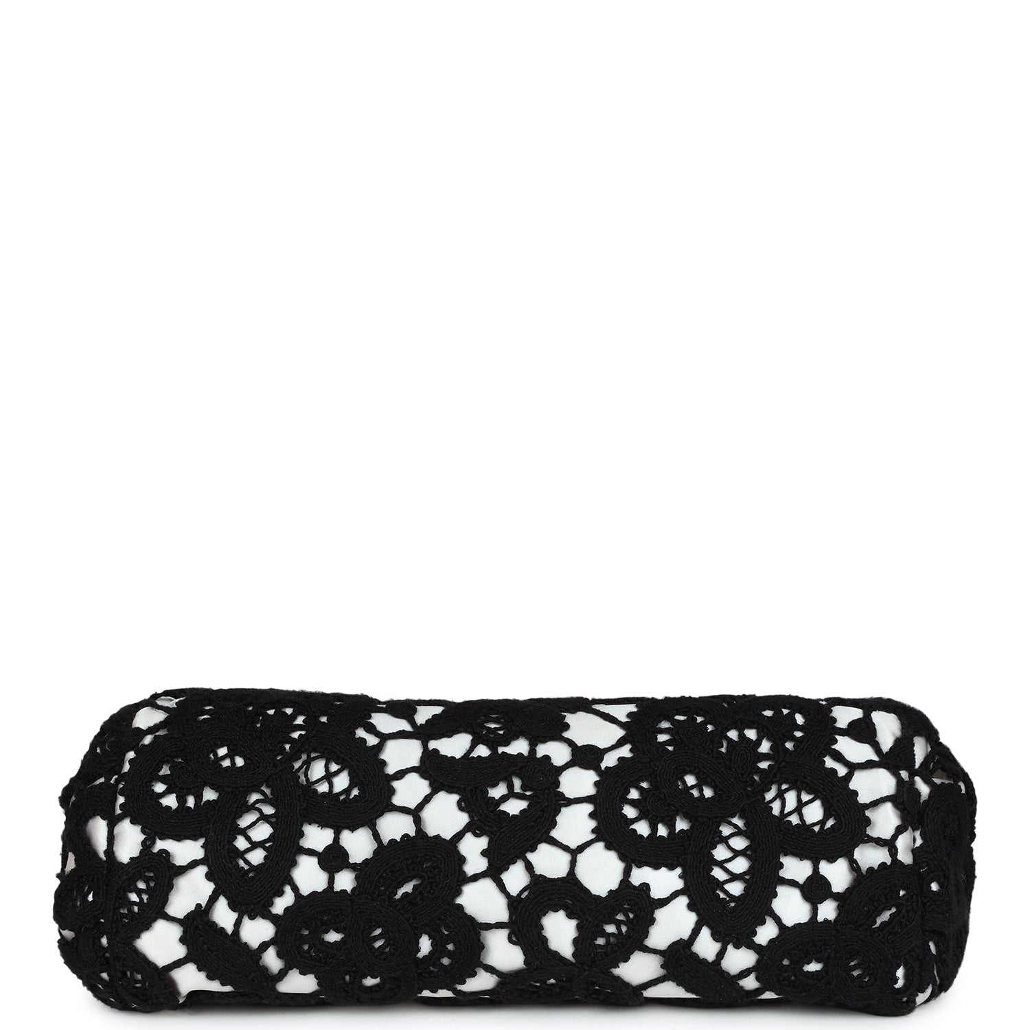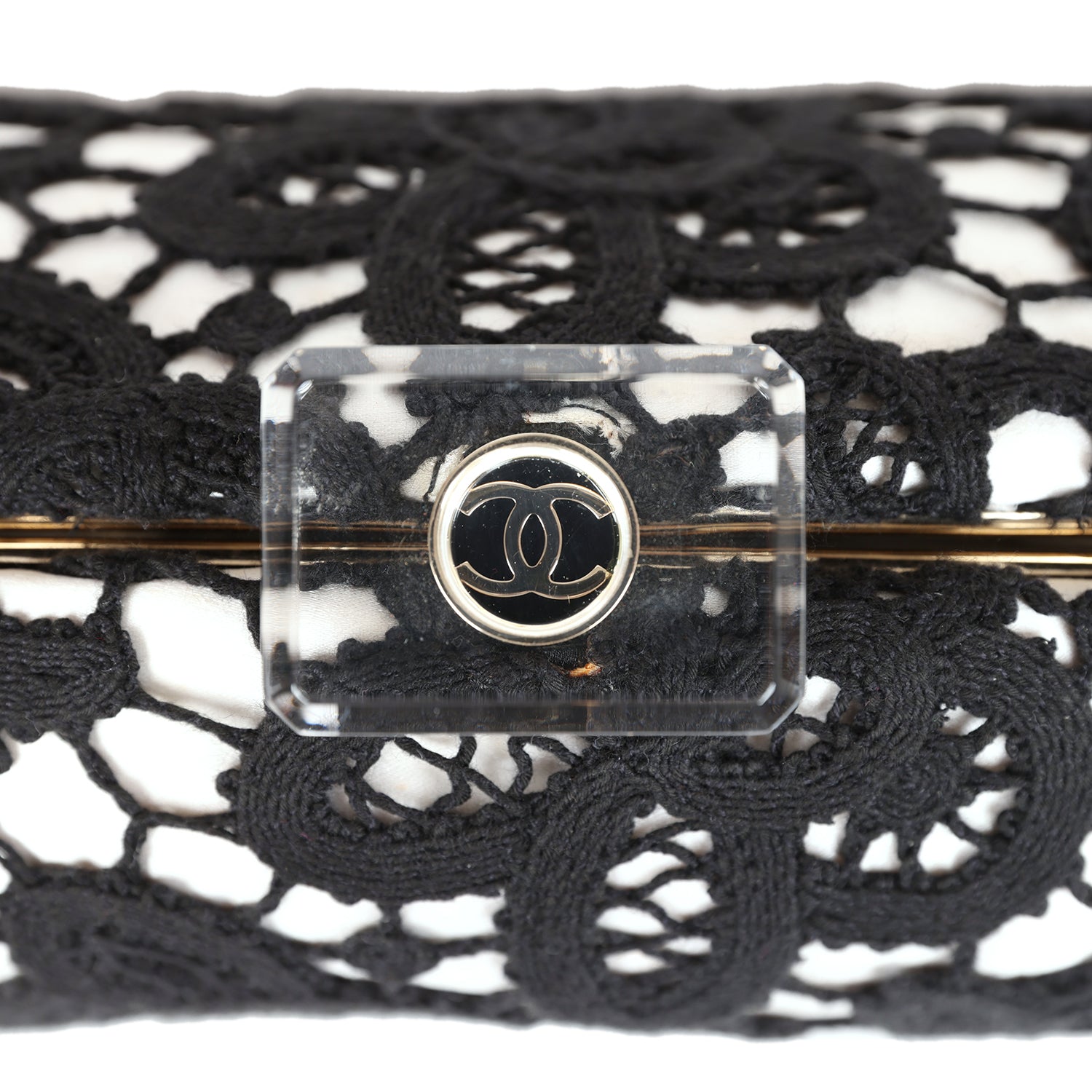 Chanel Clutch Black and White Floral Lace Gold Hardware