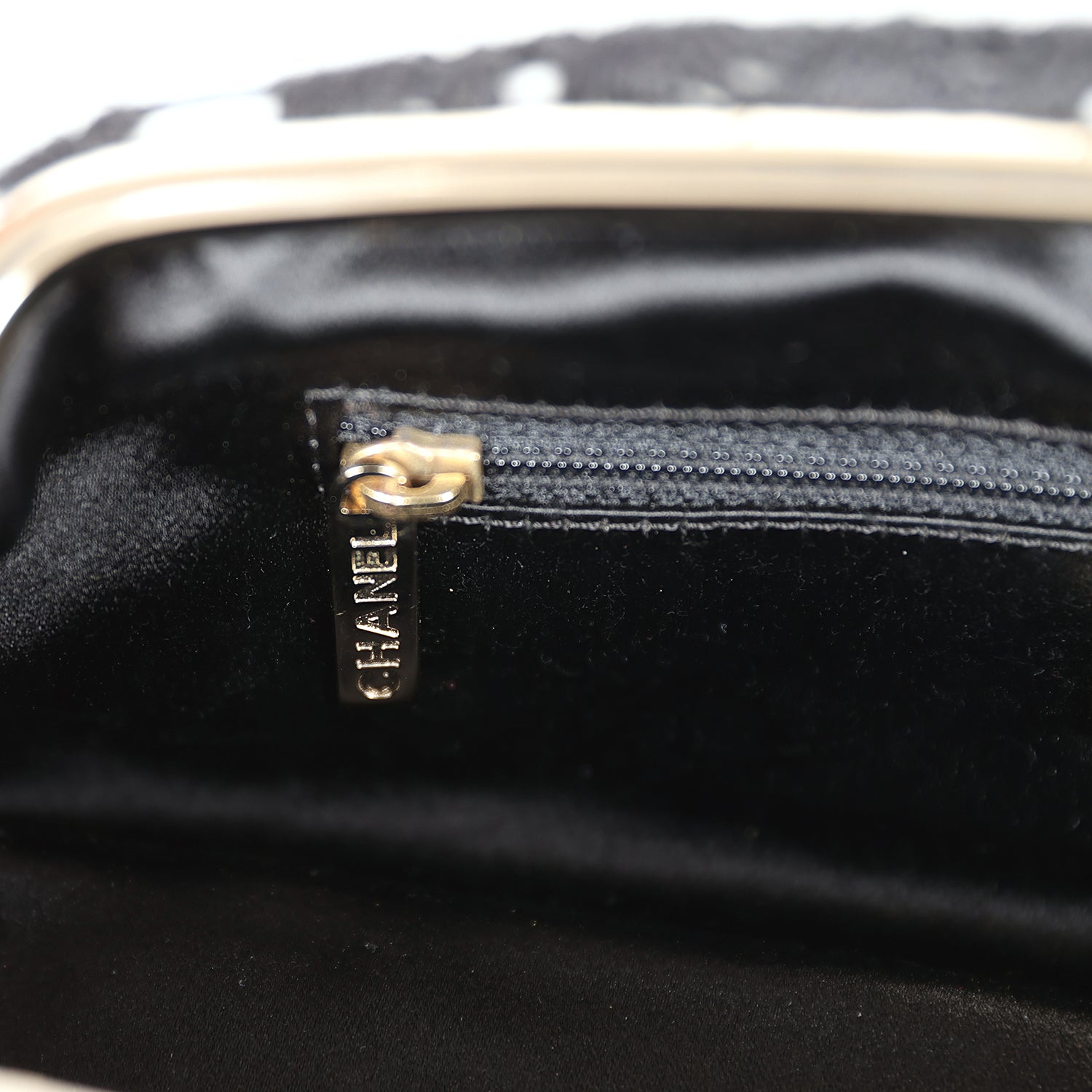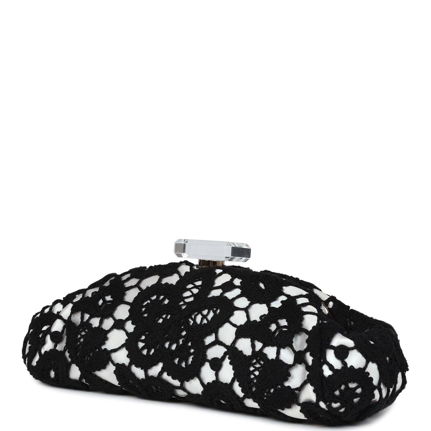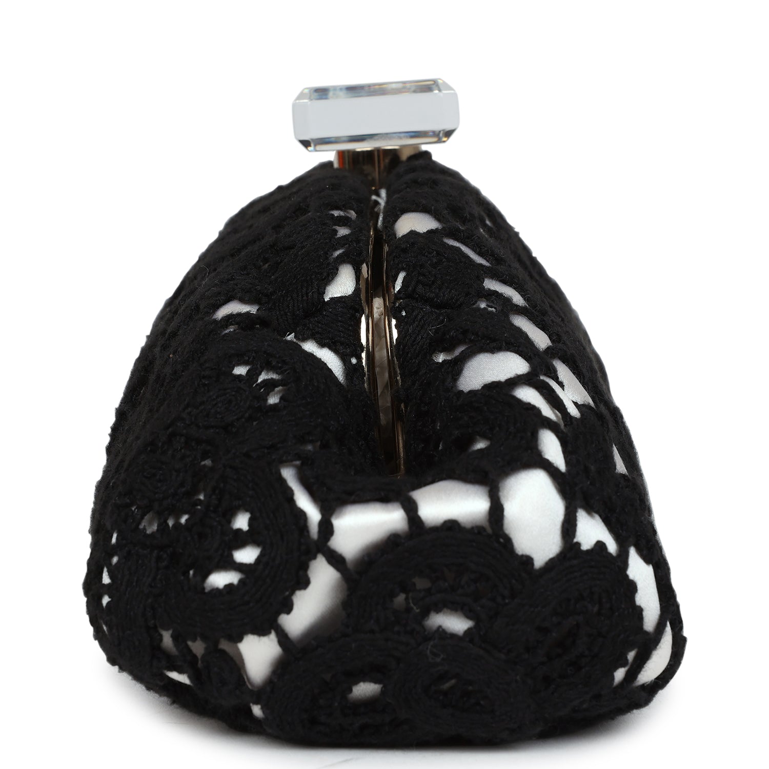 Chanel Clutch Black and White Floral Lace Gold Hardware