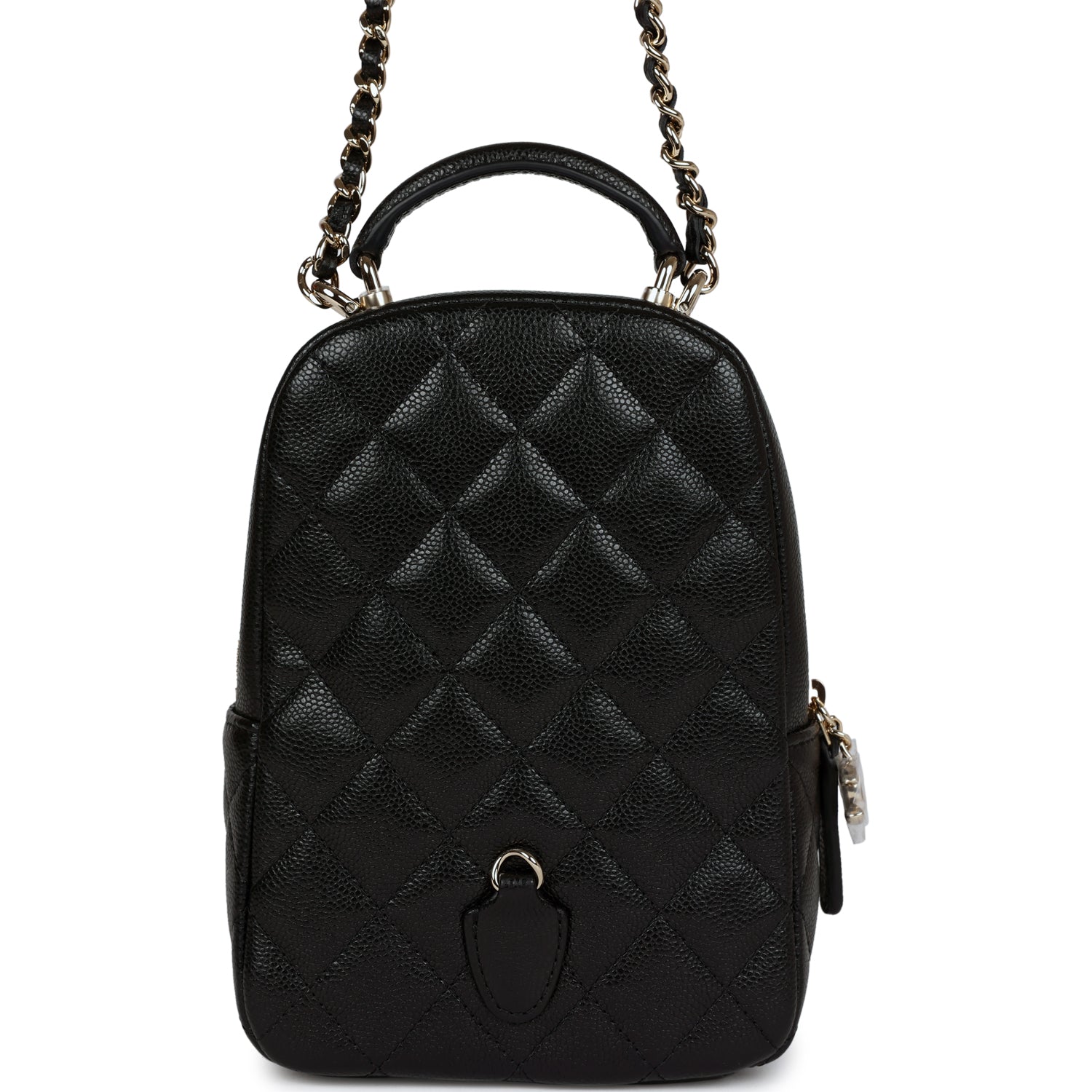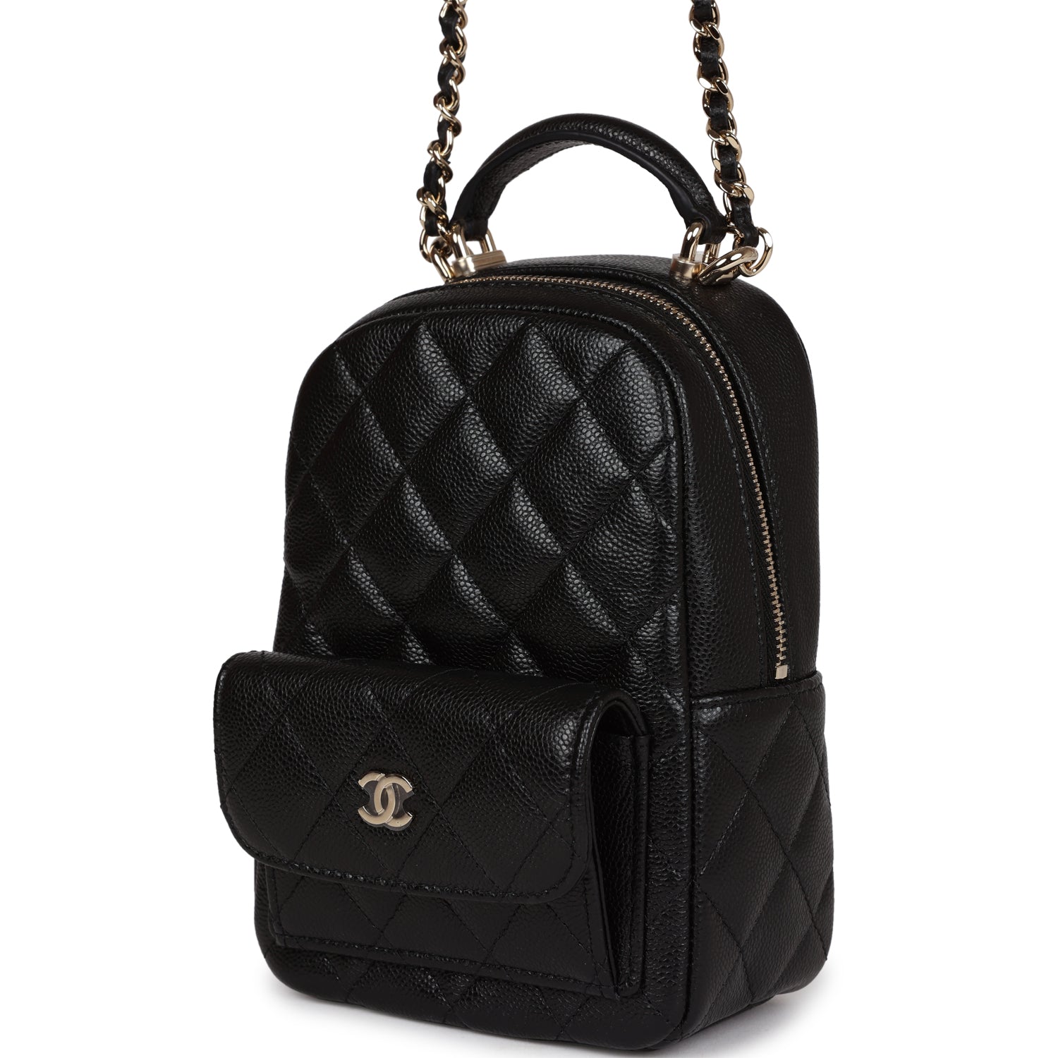 Chanel Mini Phone Holder Backpack Black Caviar Light Gold Hardware