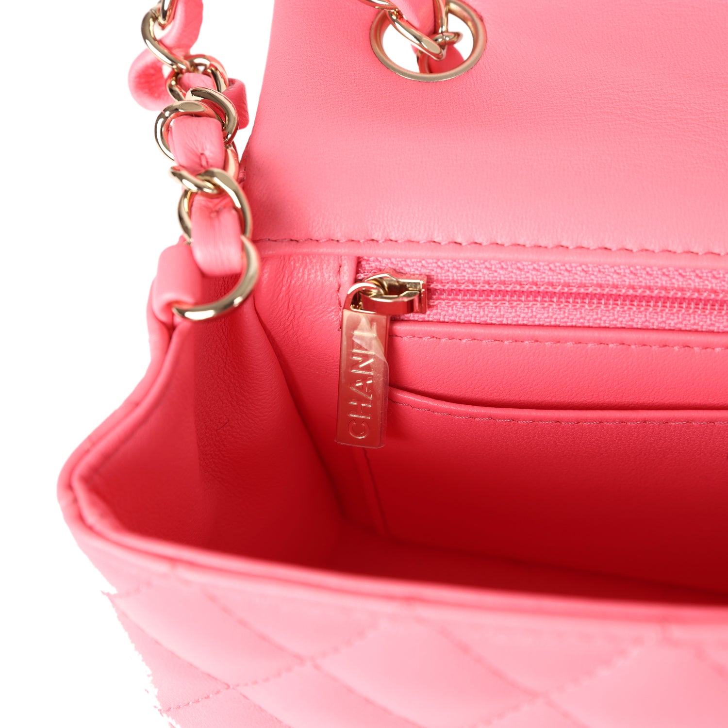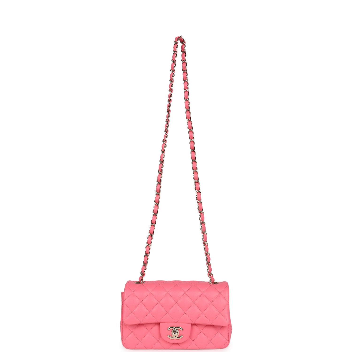 Chanel Mini Rectangular Flap Bag Hot Pink Lambskin Light Gold Hardware
