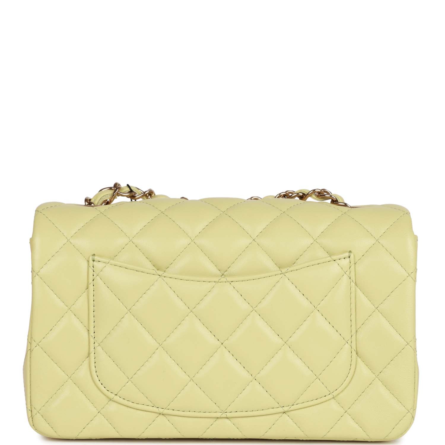 Chanel Mini Rectangular Flap Bag Light Green Lambskin Light Gold Hardware