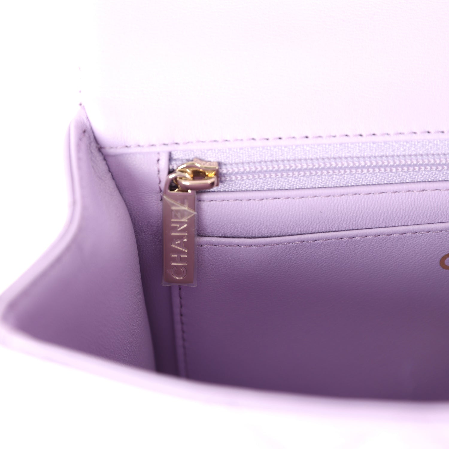 Chanel Mini Rectangular Flap Bag with Top Handle Lilac Lambskin Light Gold Hardware
