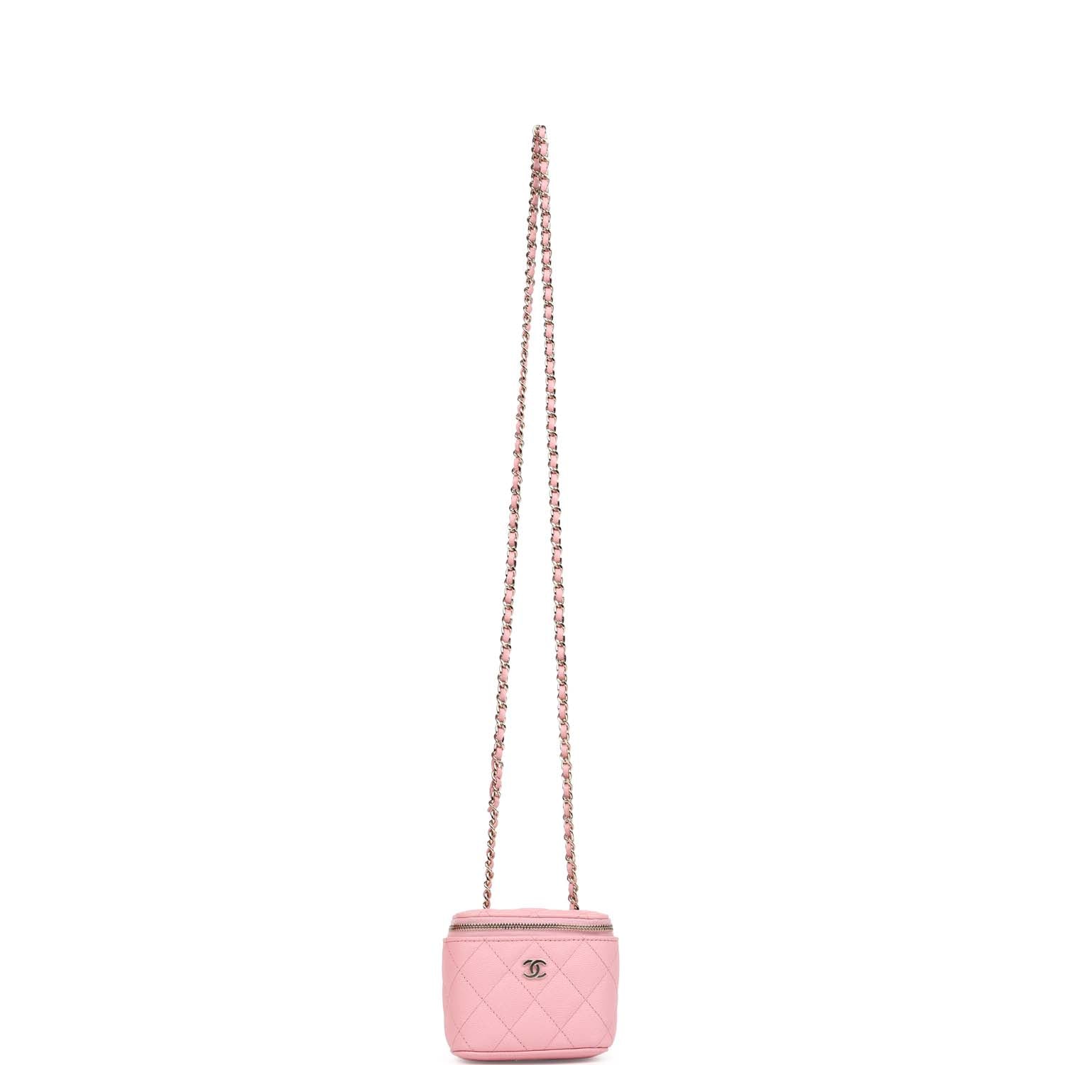 Chanel Mini Square Vanity Case Crossbody Bag Pink Caviar Light Gold Hardware