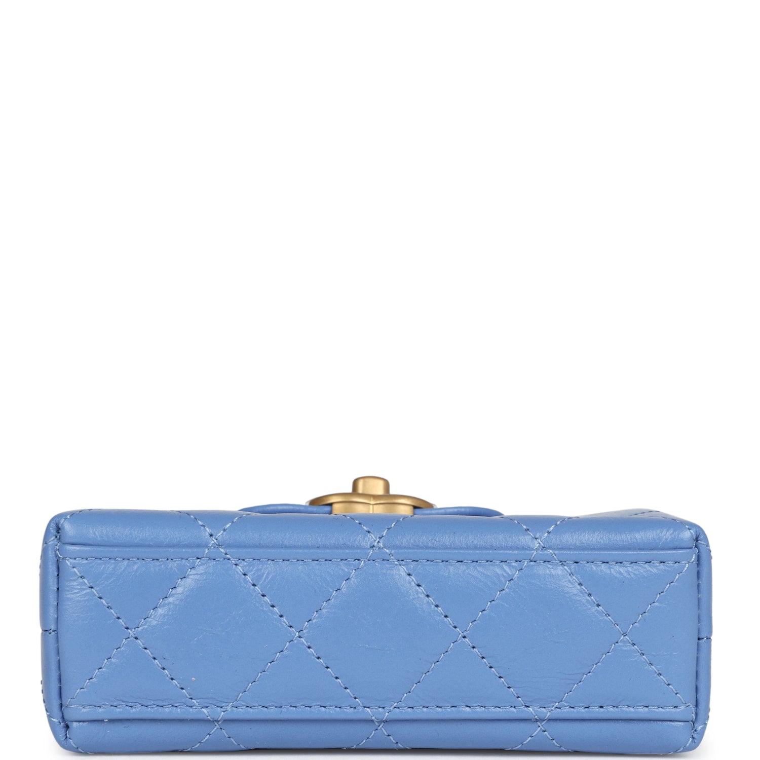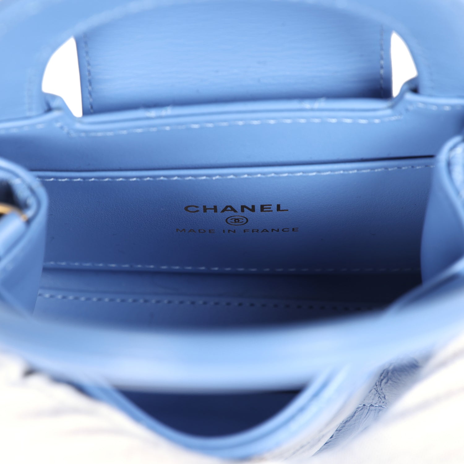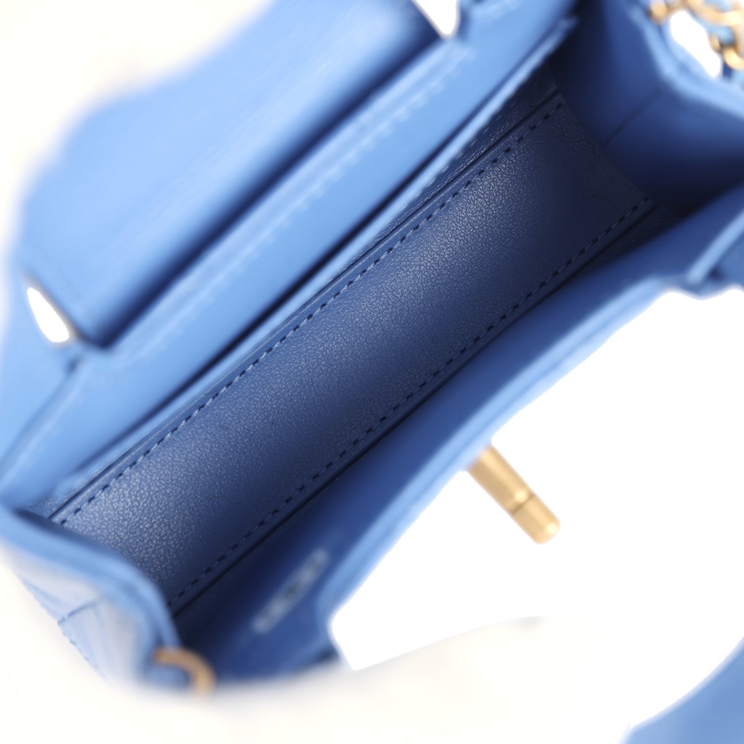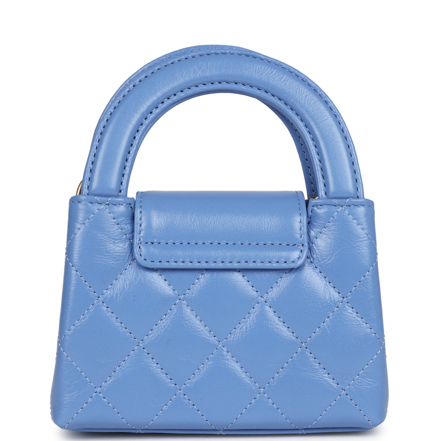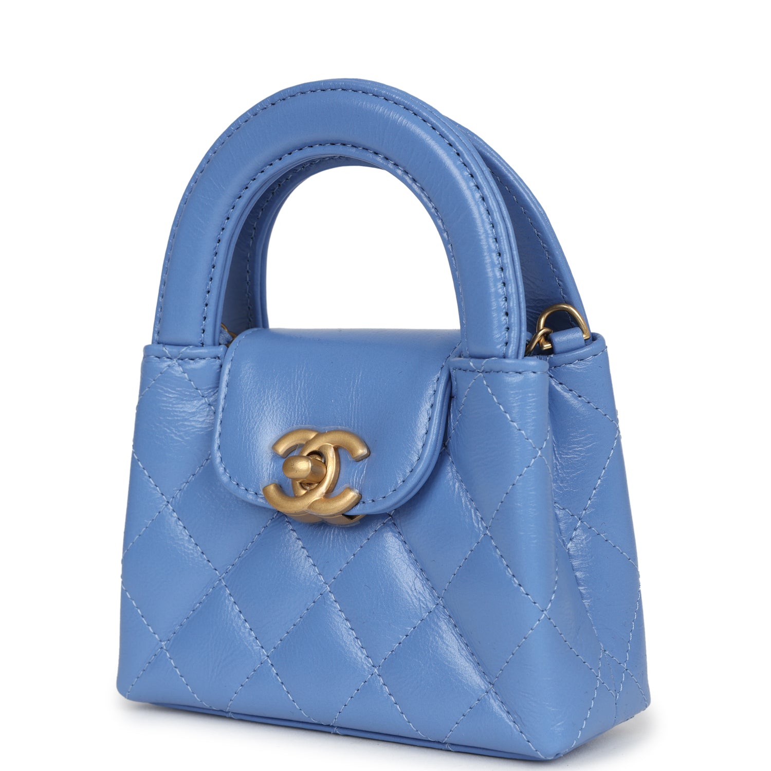 Chanel Nano Kelly Shopper Blue Shiny Aged Calfskin Brushed Gold Hardware