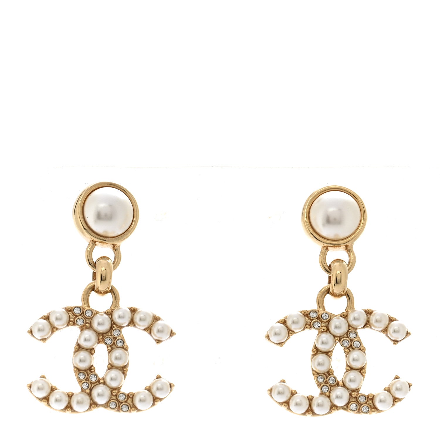 Pearl Crystal CC Drop Earrings Gold