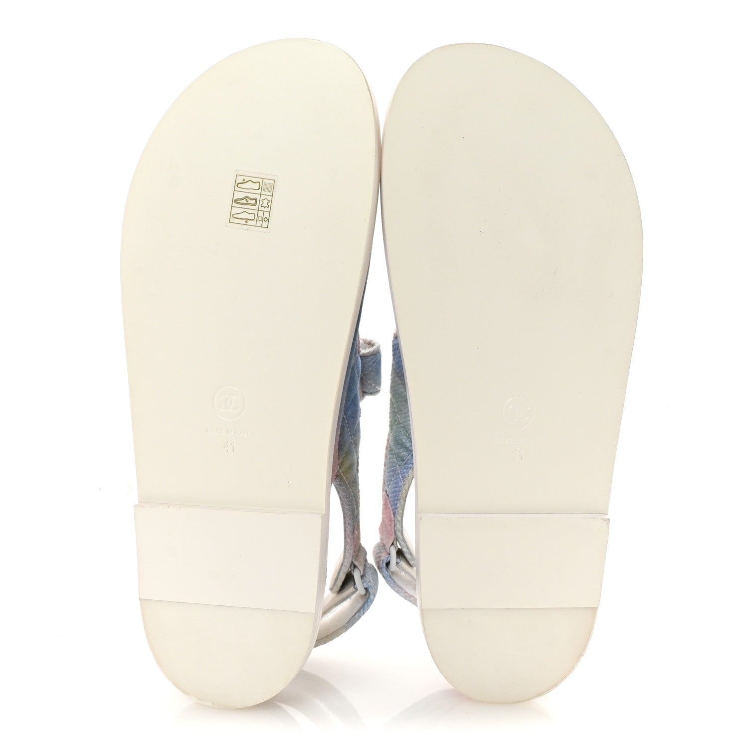 Printed Fabric Quilted Dad Sandals 41 Green Pink Blue