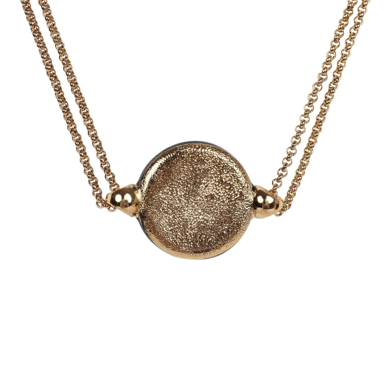 Chanel Round CC Enamel Pendant Choker Necklace Black/White Gold Hardware