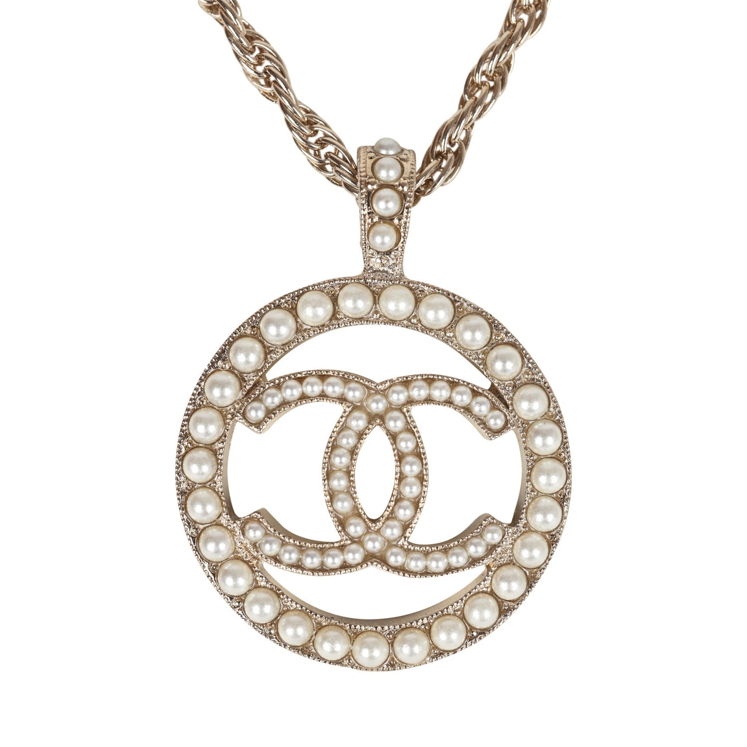 Chanel Round CC Pearl Pendant Necklace Faux Pearls & Light Gold Tone Hardware