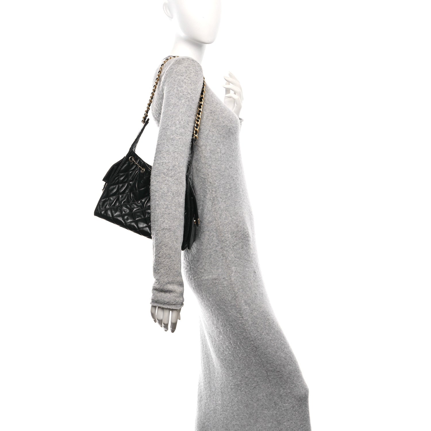 Shiny Calfskin Quilted Small Chanel 25 Handbag Black
