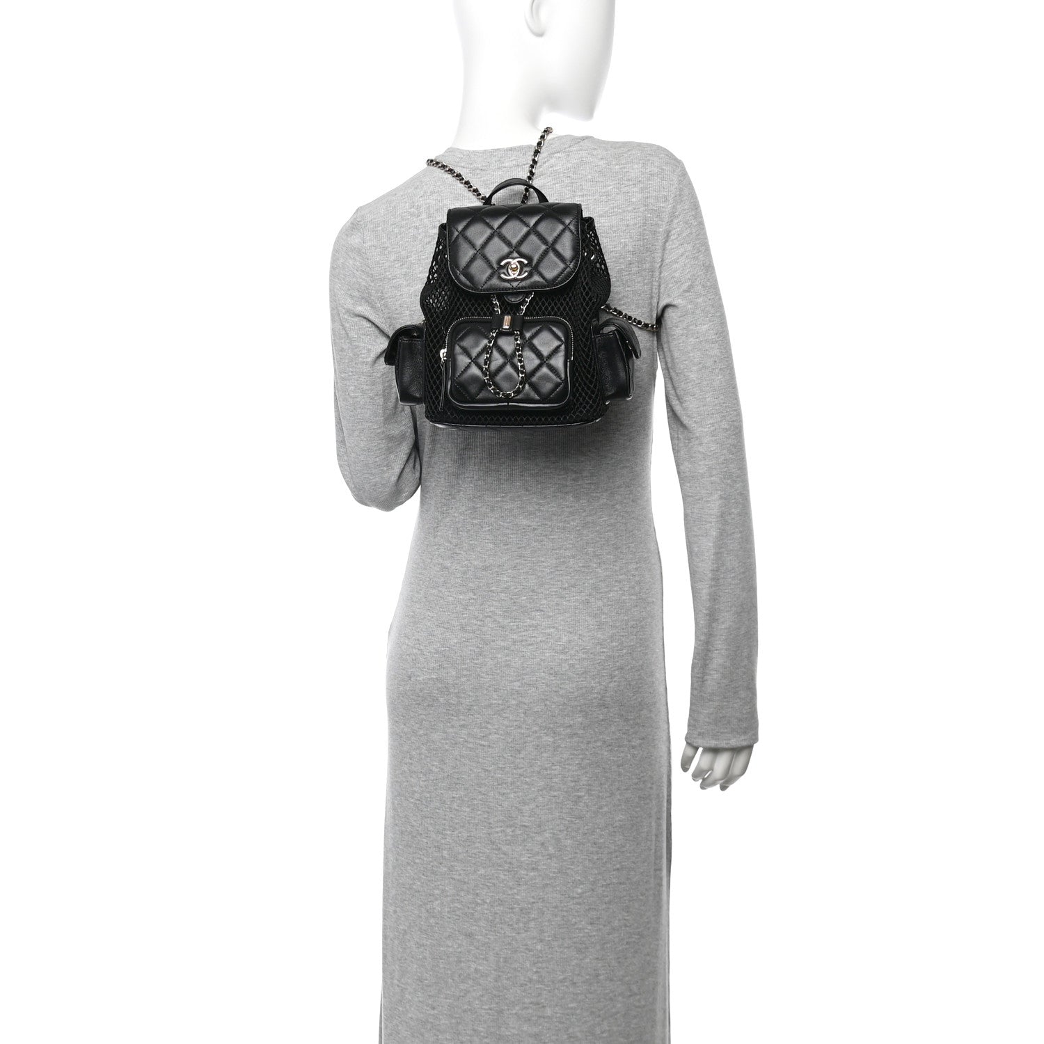 Shiny Lambskin Mesh Quilted Small Cargo Duma Drawstring Backpack Black
