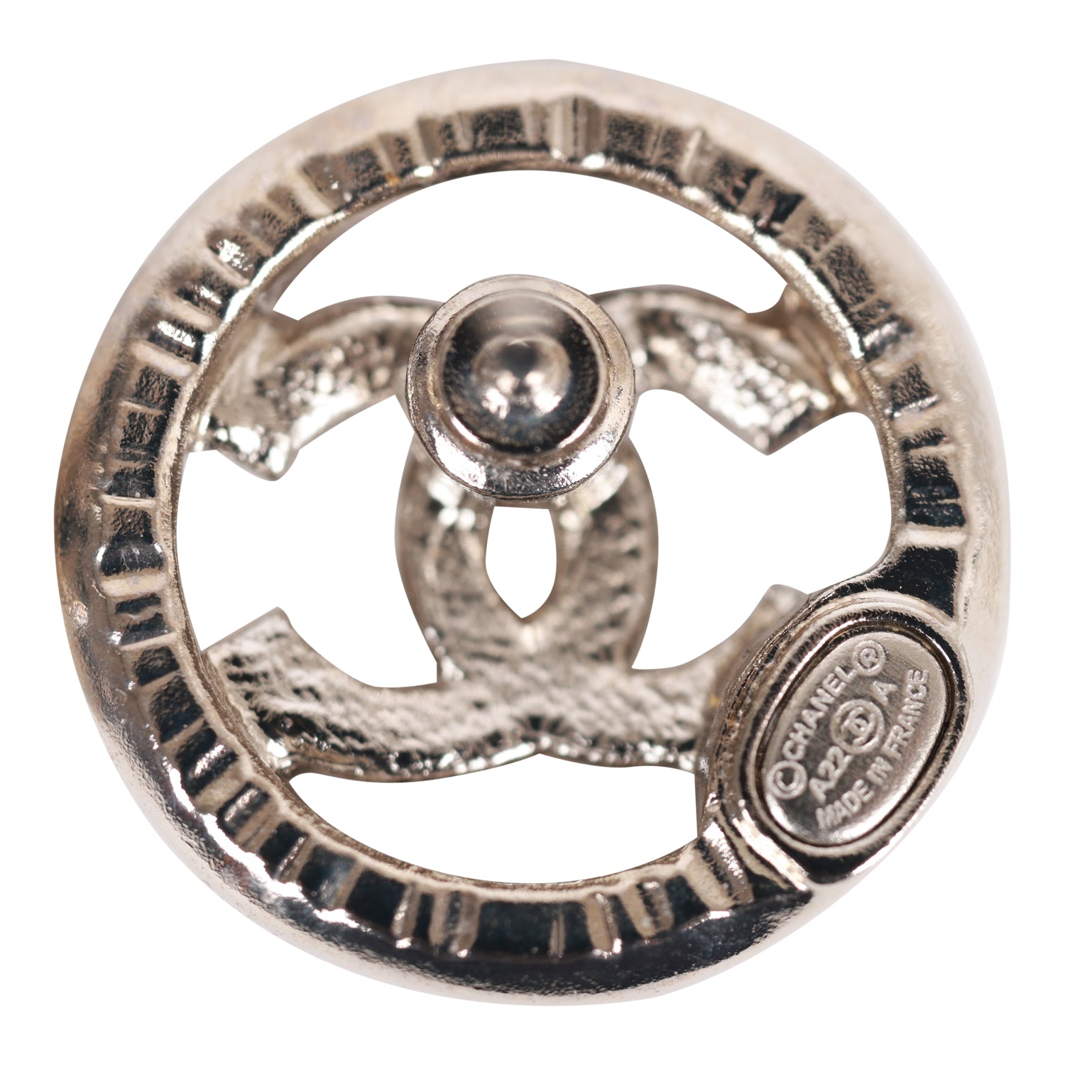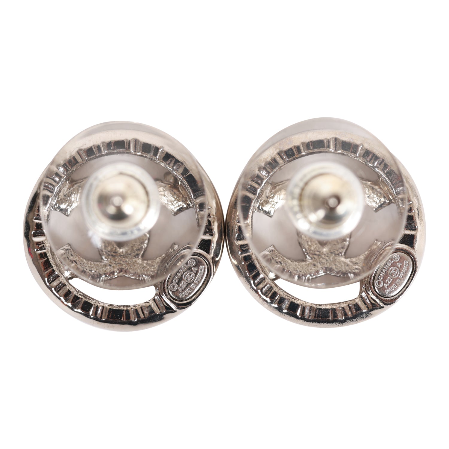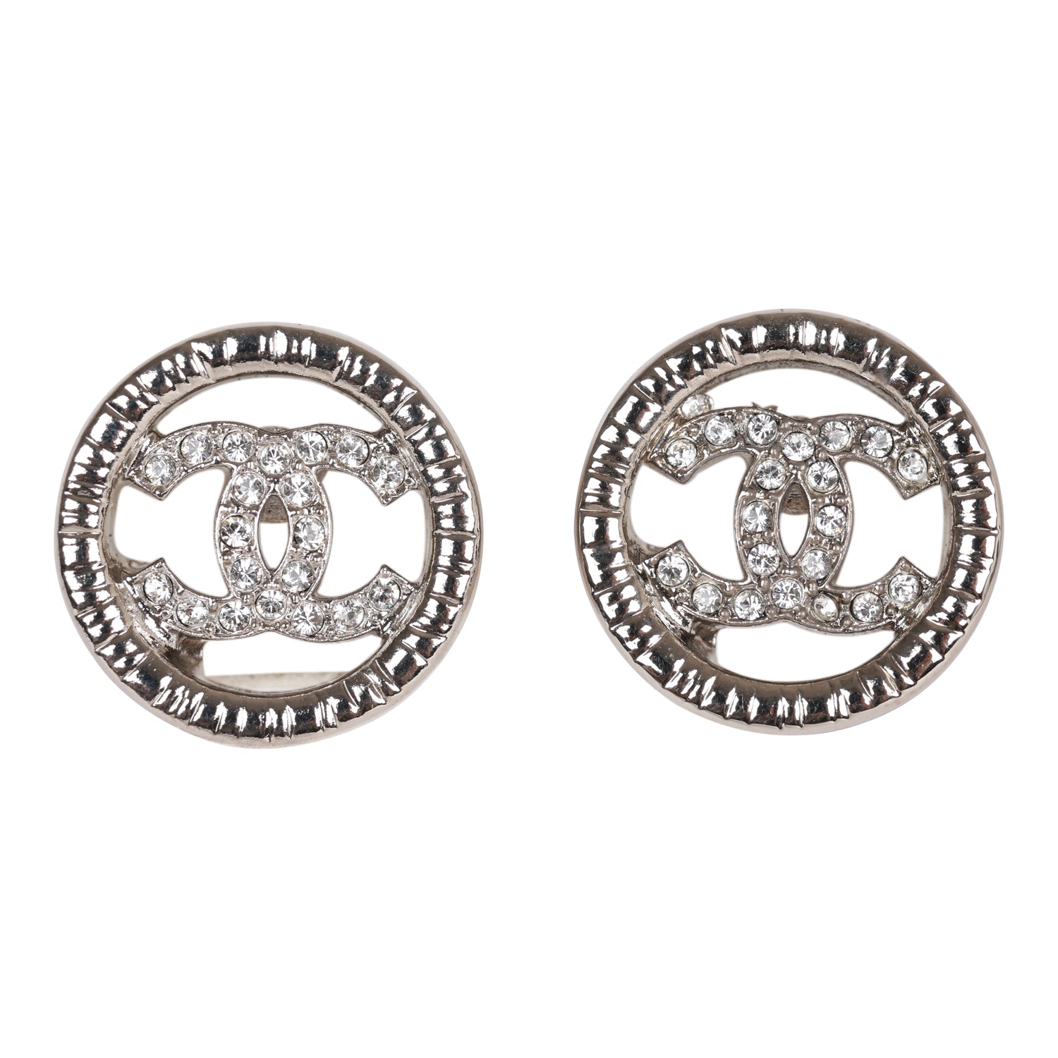 Chanel Silver CC Circle Stud Earrings