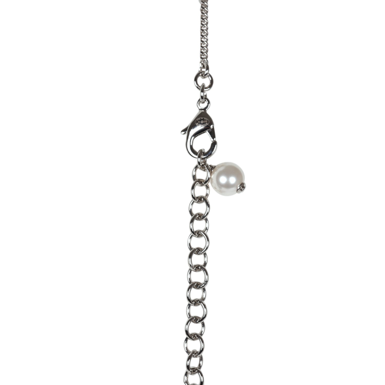 Chanel Silver Metal, White Strass, and White Pearl Logo and Hearts Sautoir Necklace