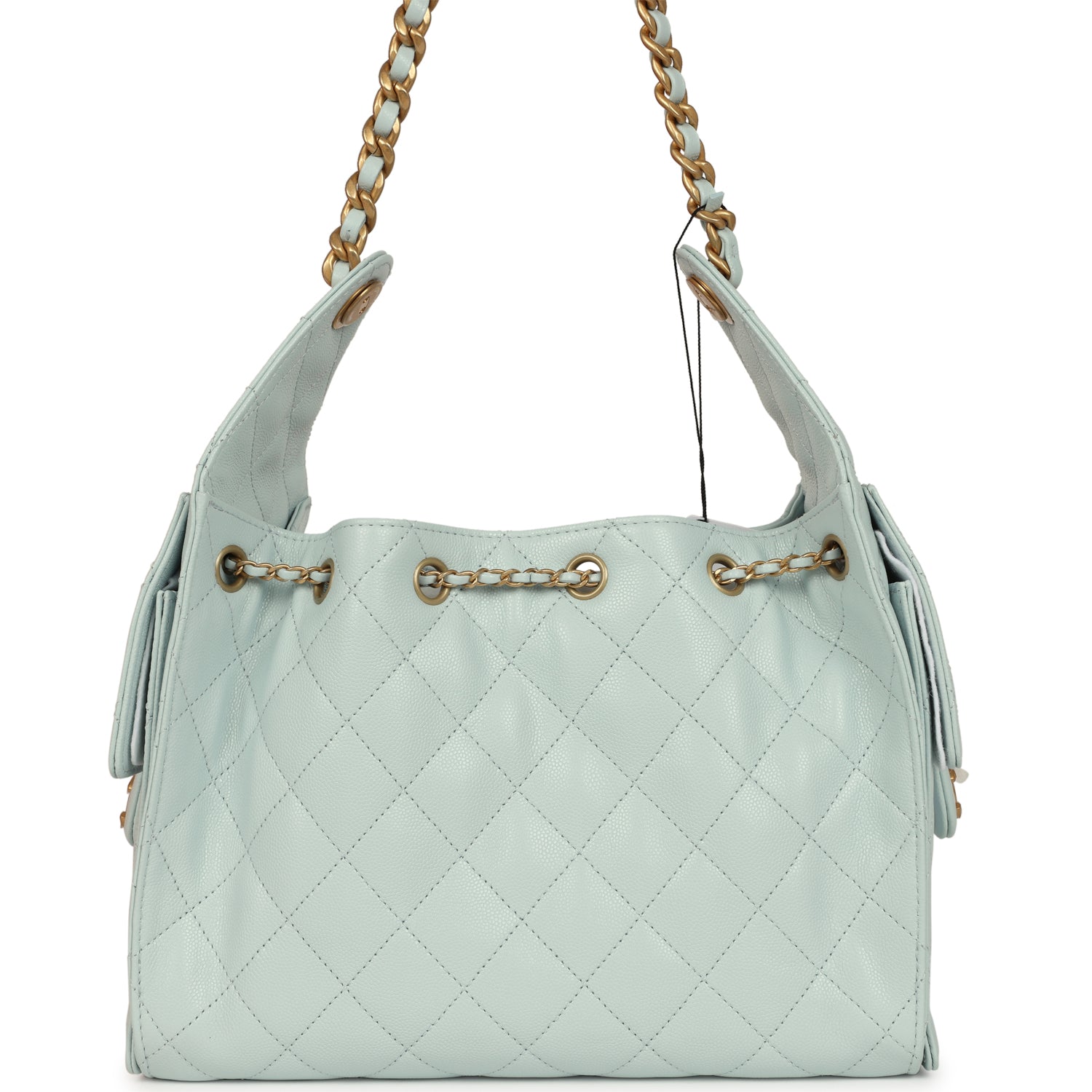 Chanel Small 25 Hobo Bag Light Blue Caviar Antique Gold Hardware