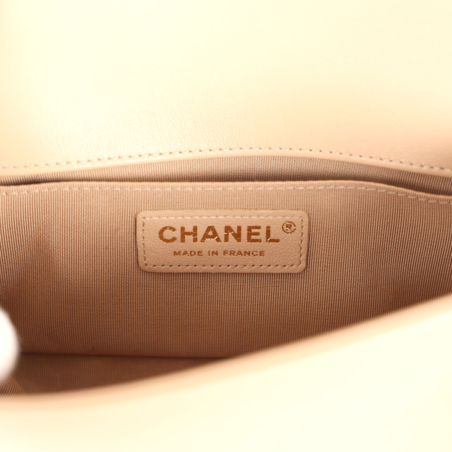 Chanel Small Boy Bag Beige Lambskin Light Gold Hardware