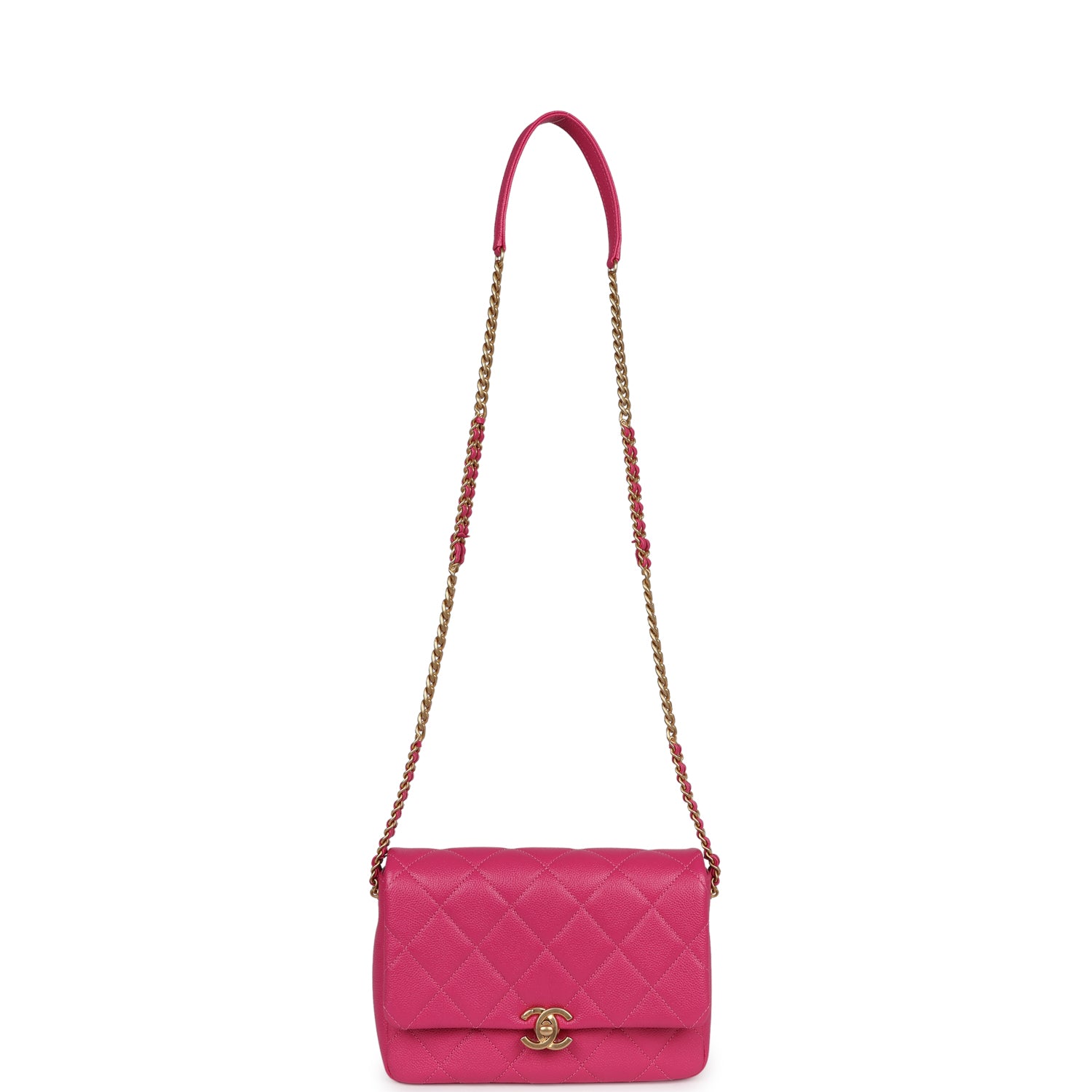 Chanel Small Melody Flap Bag Dark Pink Caviar Aged Gold Hardware