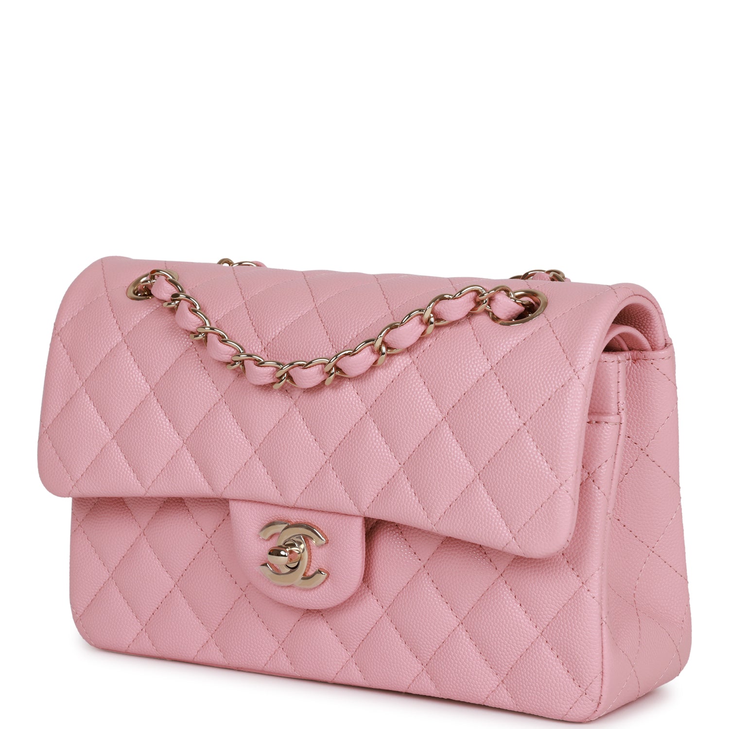 Chanel Small Classic Double Flap Bag Pink Caviar Light Gold Hardware