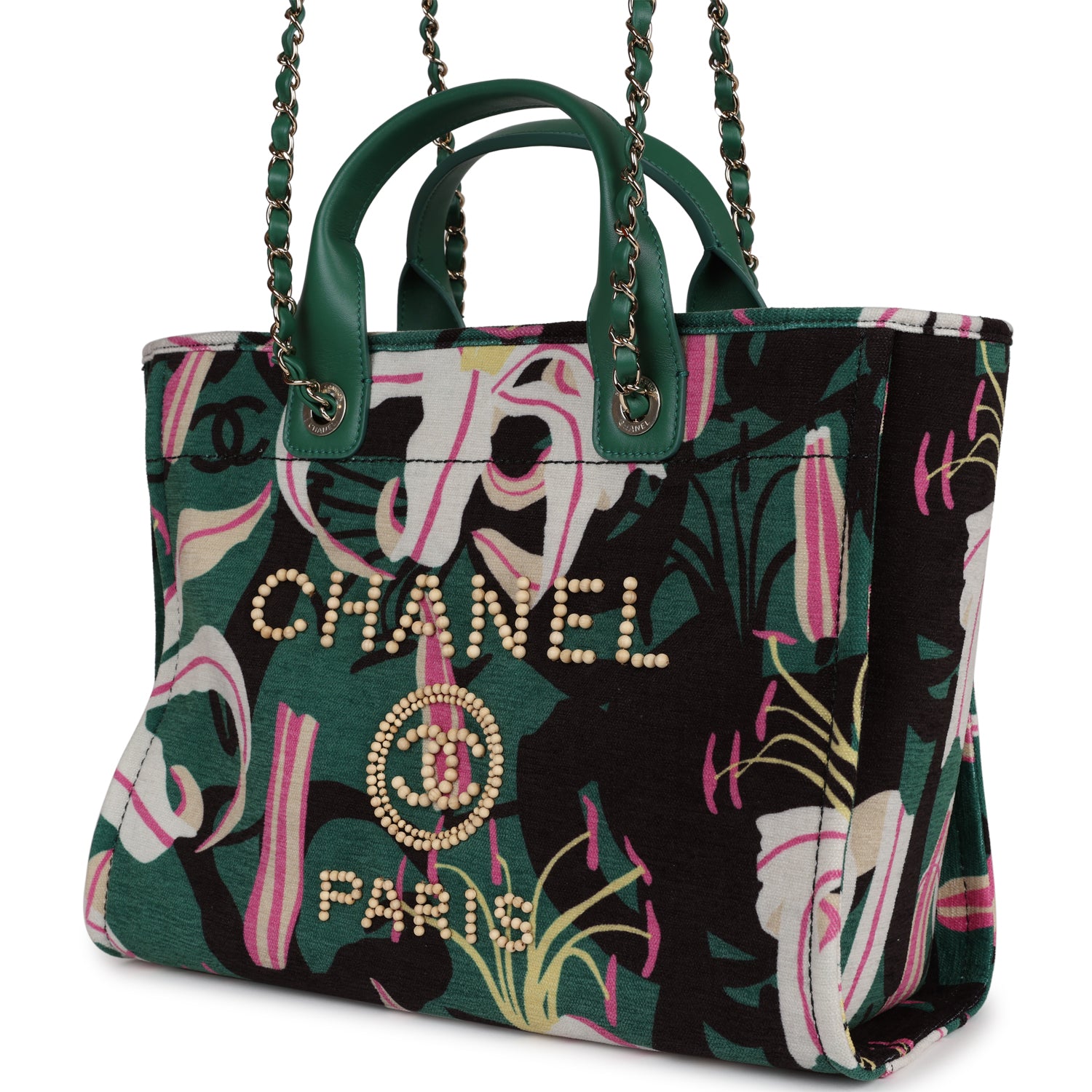 Chanel Small Deauville Shopping Tote Green and Pink Tropical Floral Velvet Light Gold Hardware