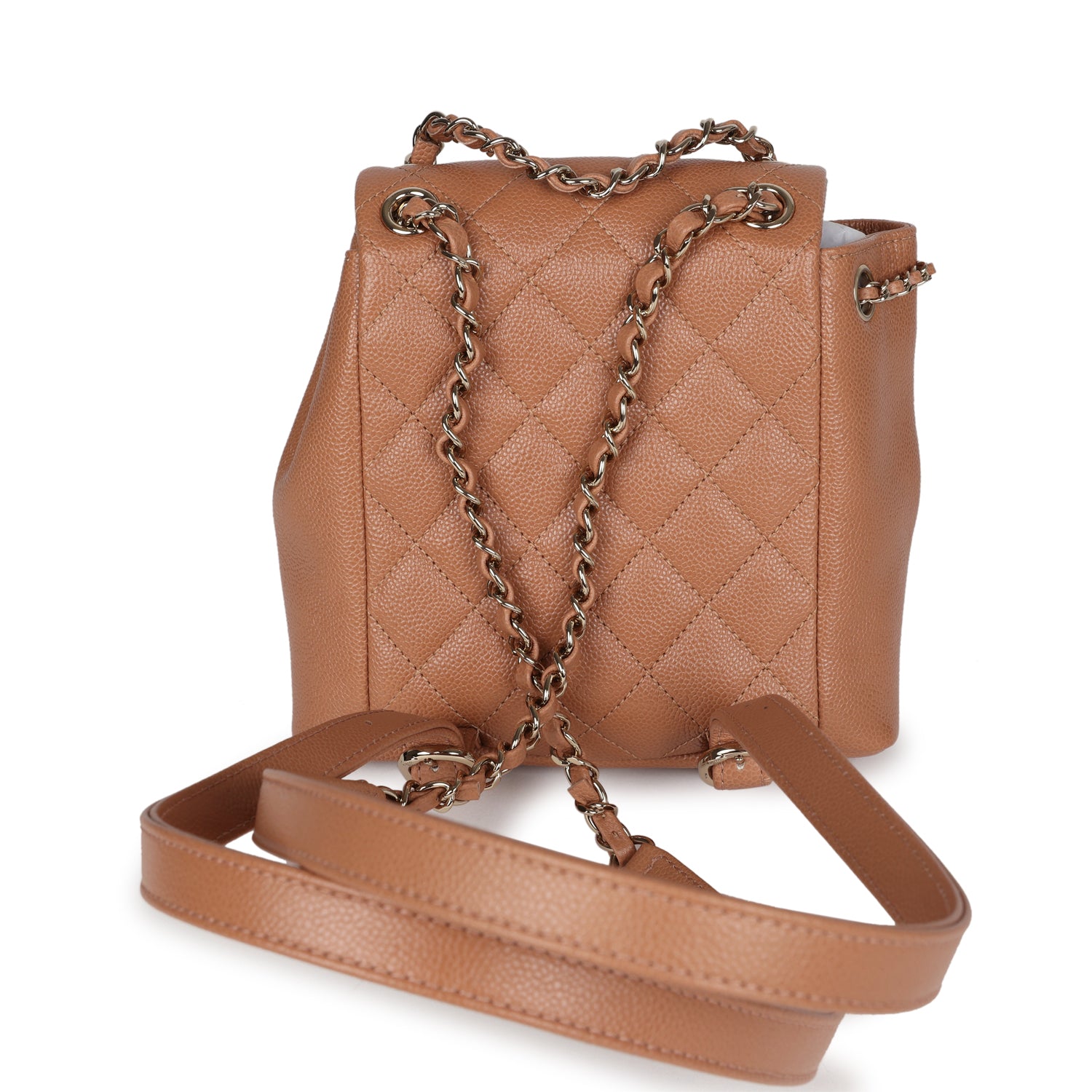 Chanel Small Duma Backpack Dark Beige Caviar Light Gold Hardware