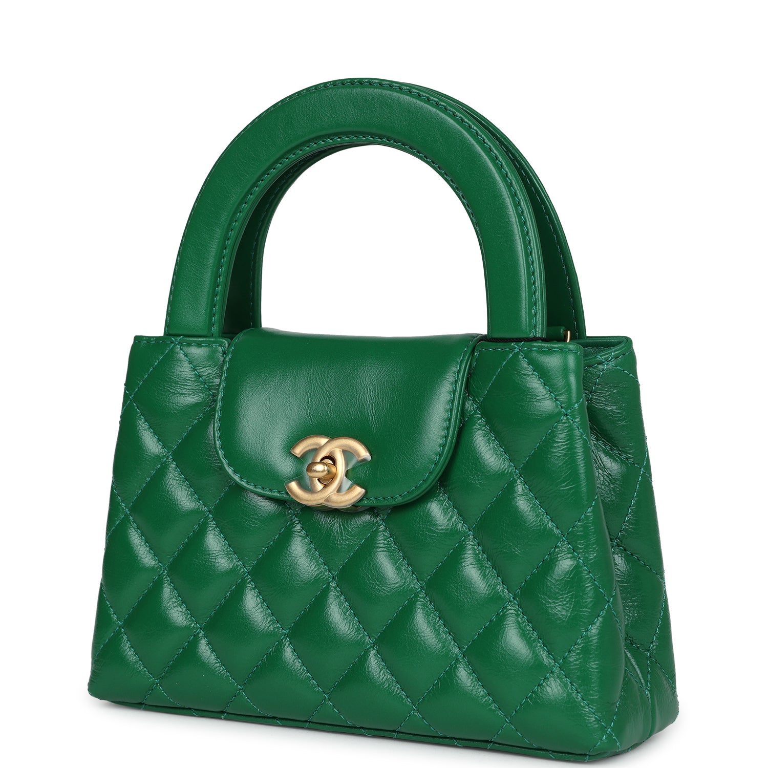 Chanel Small Kelly Shopper Dark Green Shiny Aged Calfskin Brushed Gold Hardware