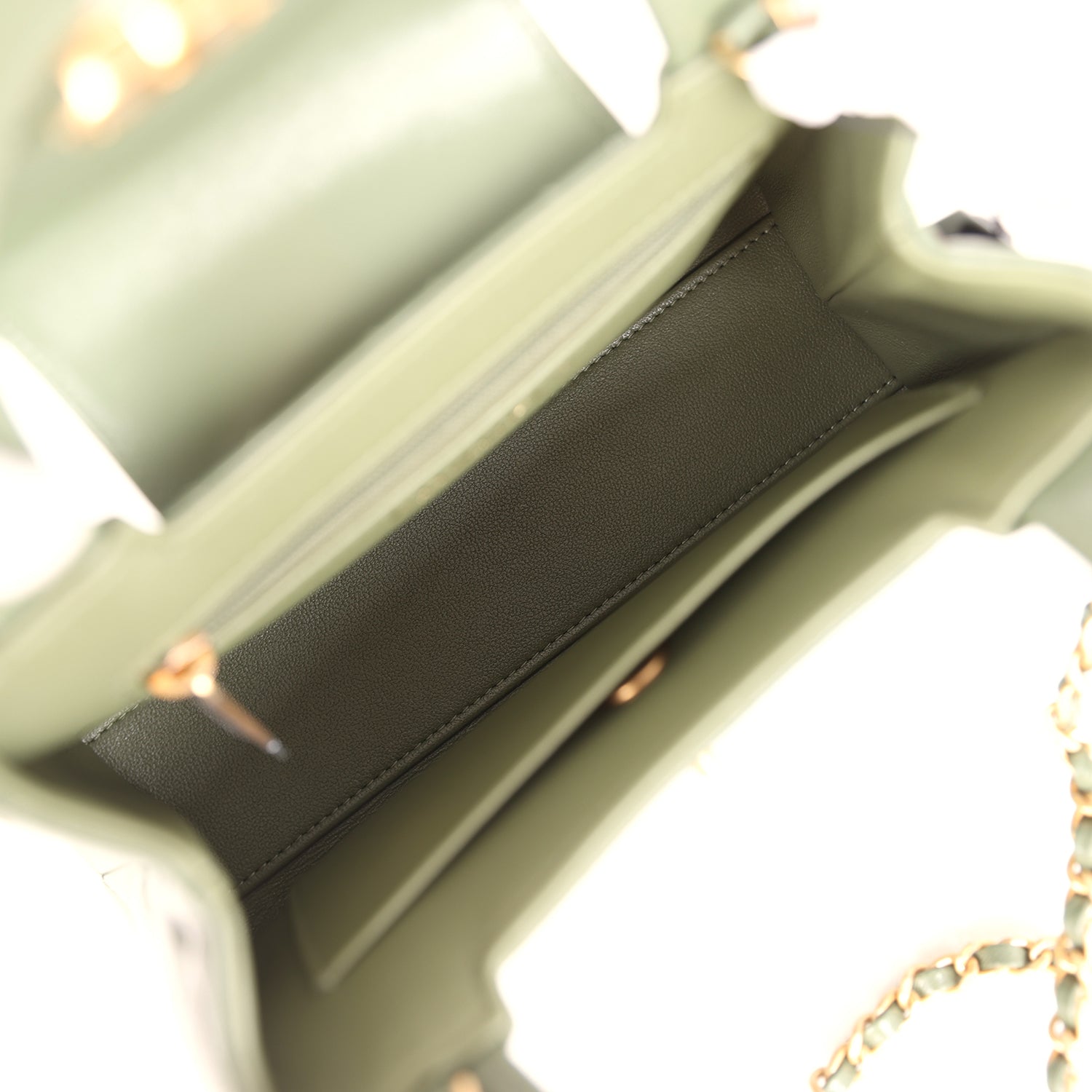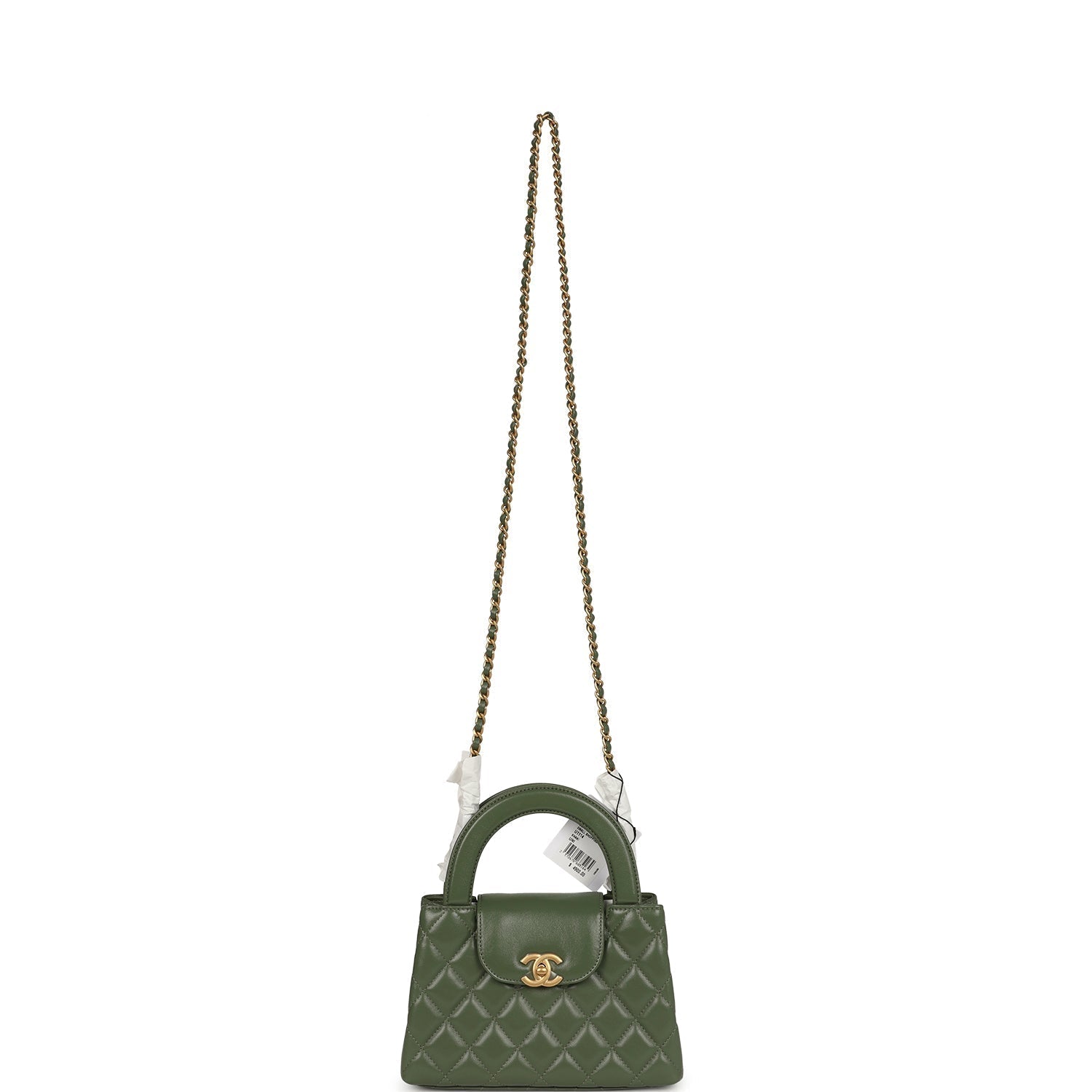 Chanel Small Kelly Shopper Khaki Shiny Aged Calfskin Brushed Gold Hardware