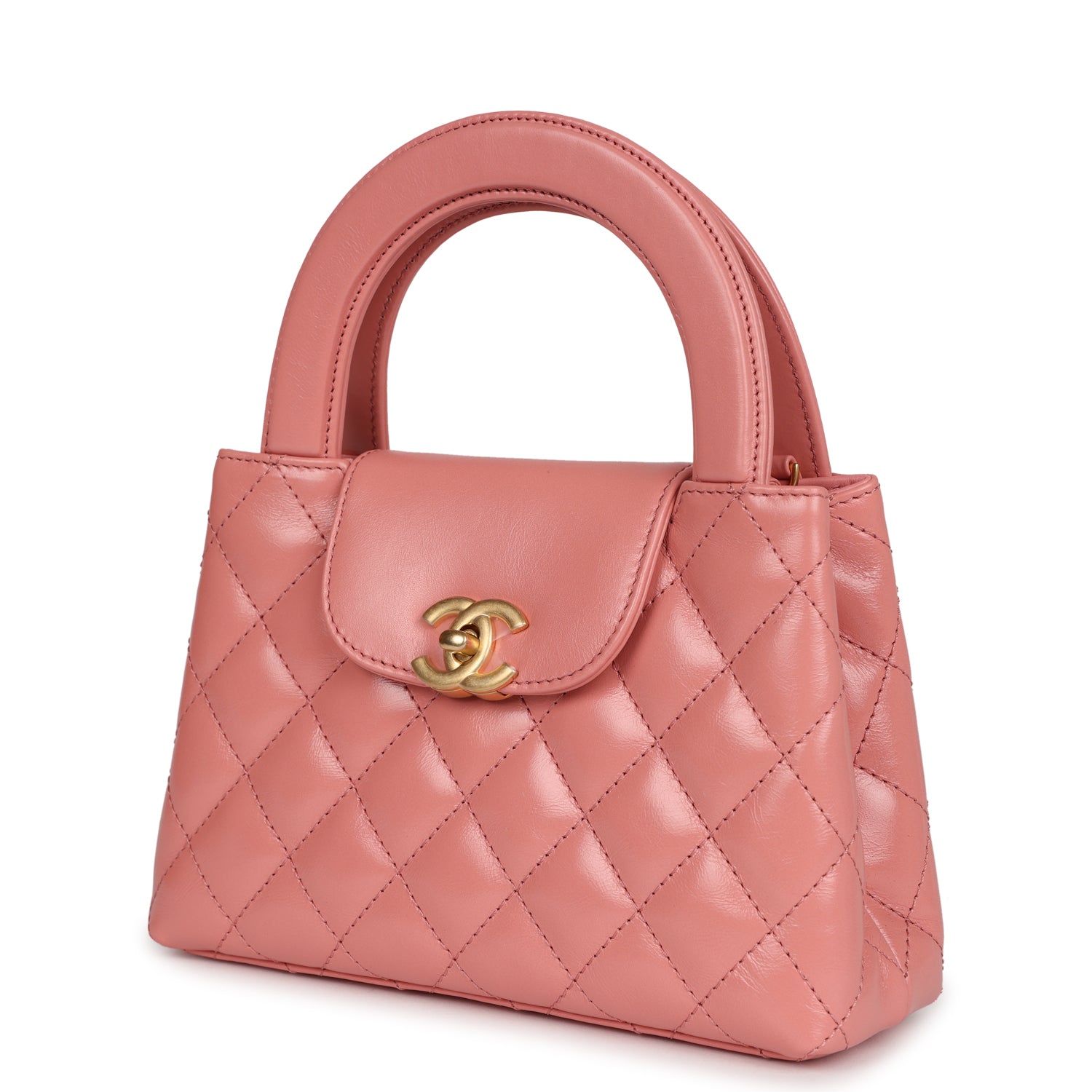Chanel Small Kelly Shopper Pink Shiny Aged Calfskin Brushed Gold Hardware
