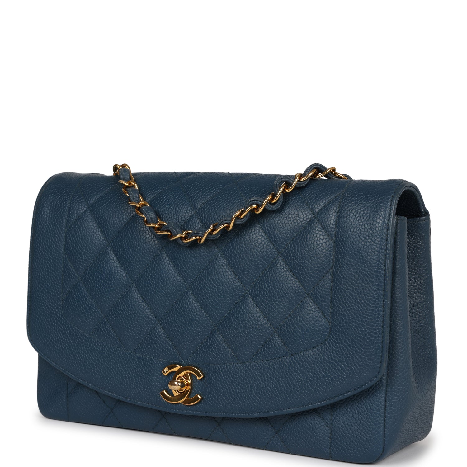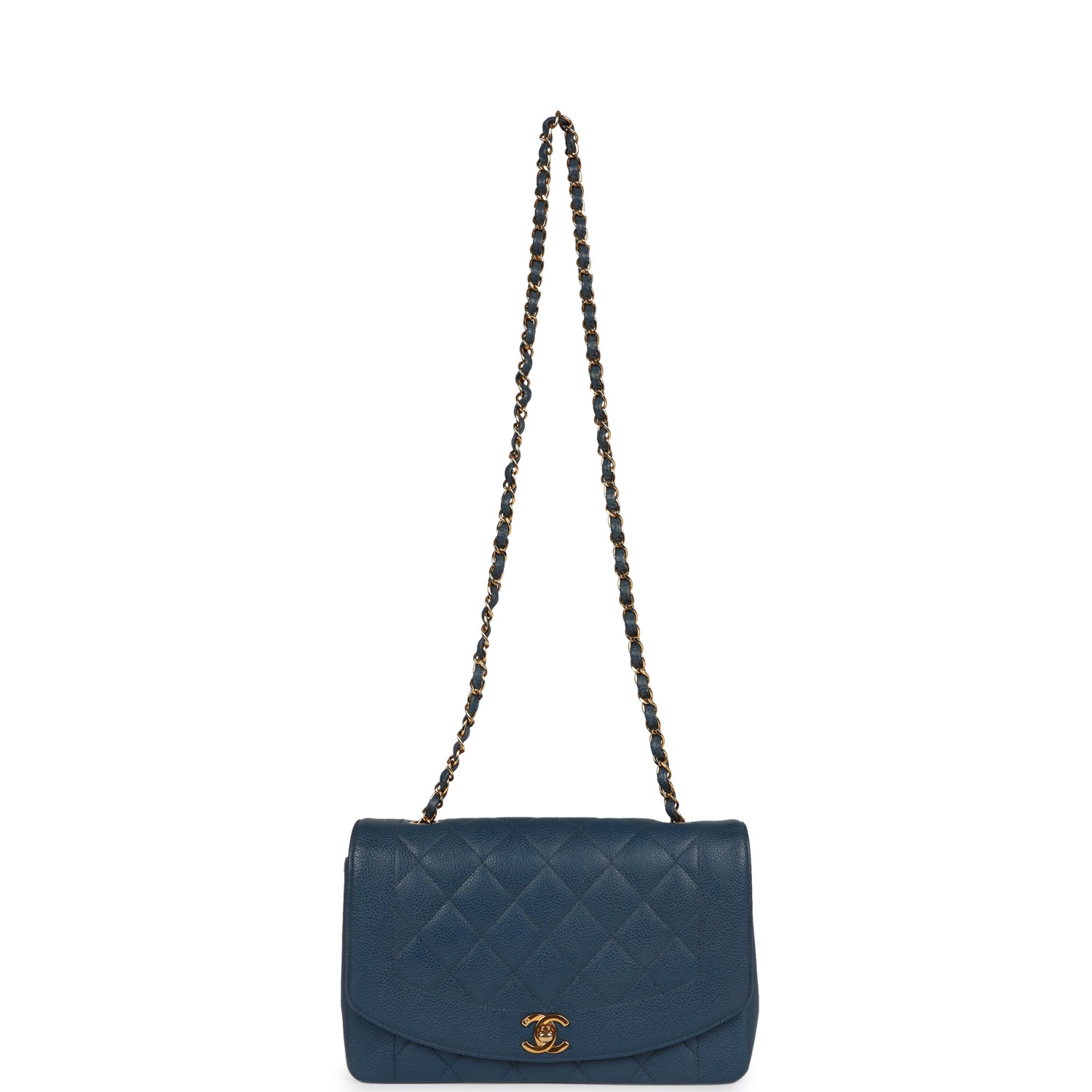 Vintage Chanel Medium Diana Flap Bag Blue Caviar Gold Hardware