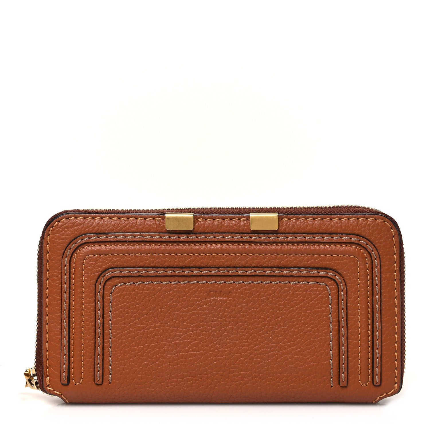 Grained Calfskin Marcie Long Zip Around Wallet Tan