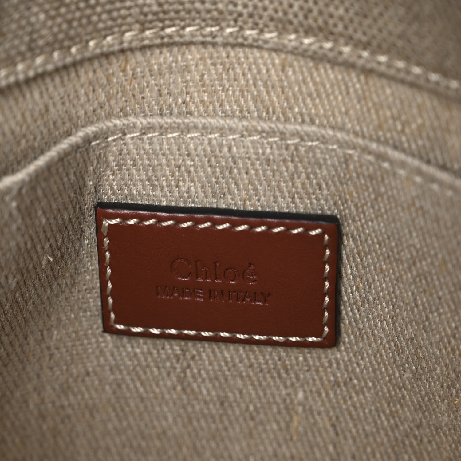 Linen Calfskin Small Woody Ribbon Tote With Strap White Brown