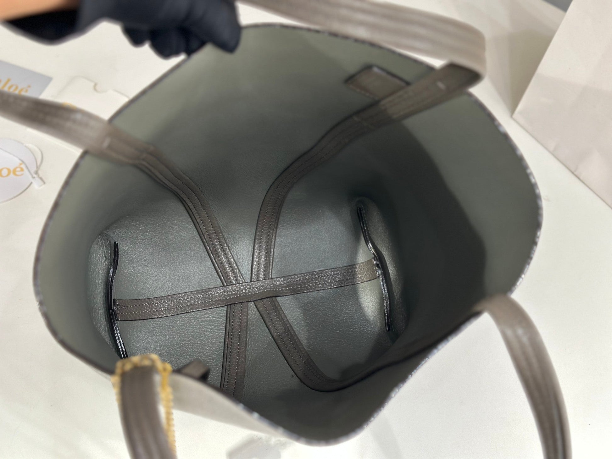 Chloe Spin Taupe Gray Calfskin