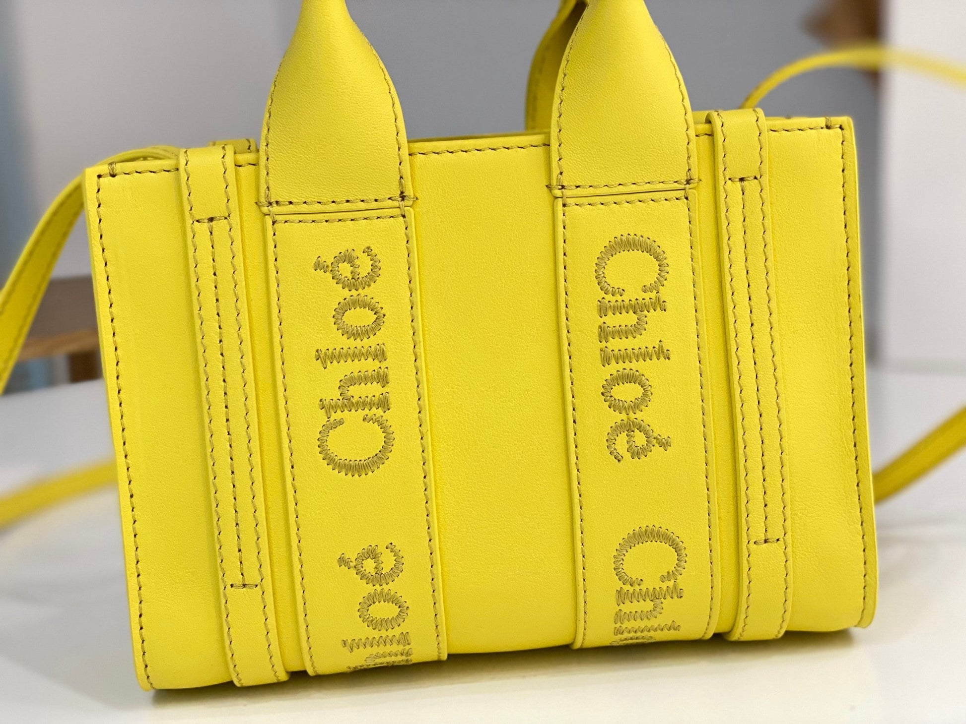 Chloé Woody mini tote bag yellow calfskin