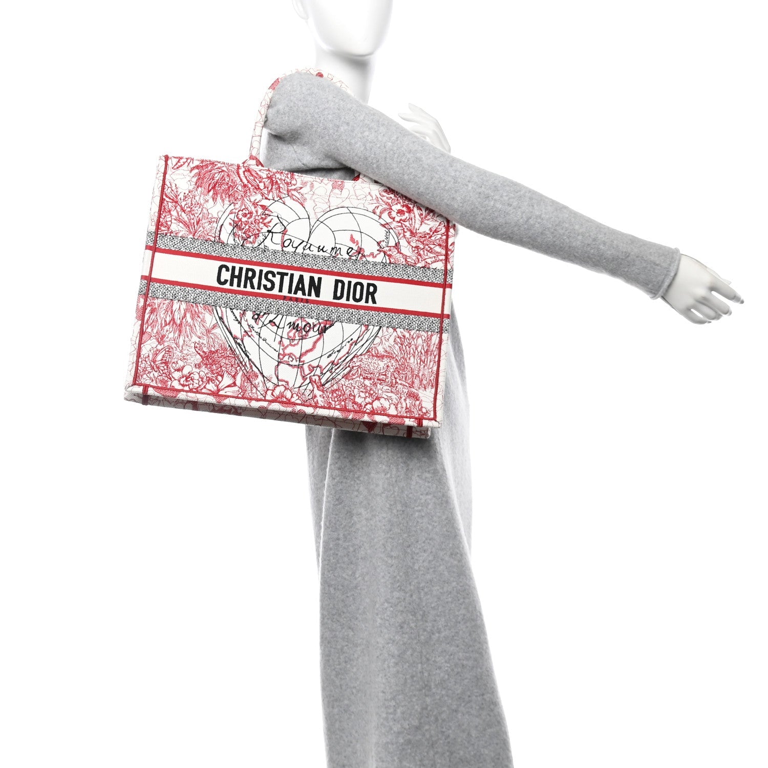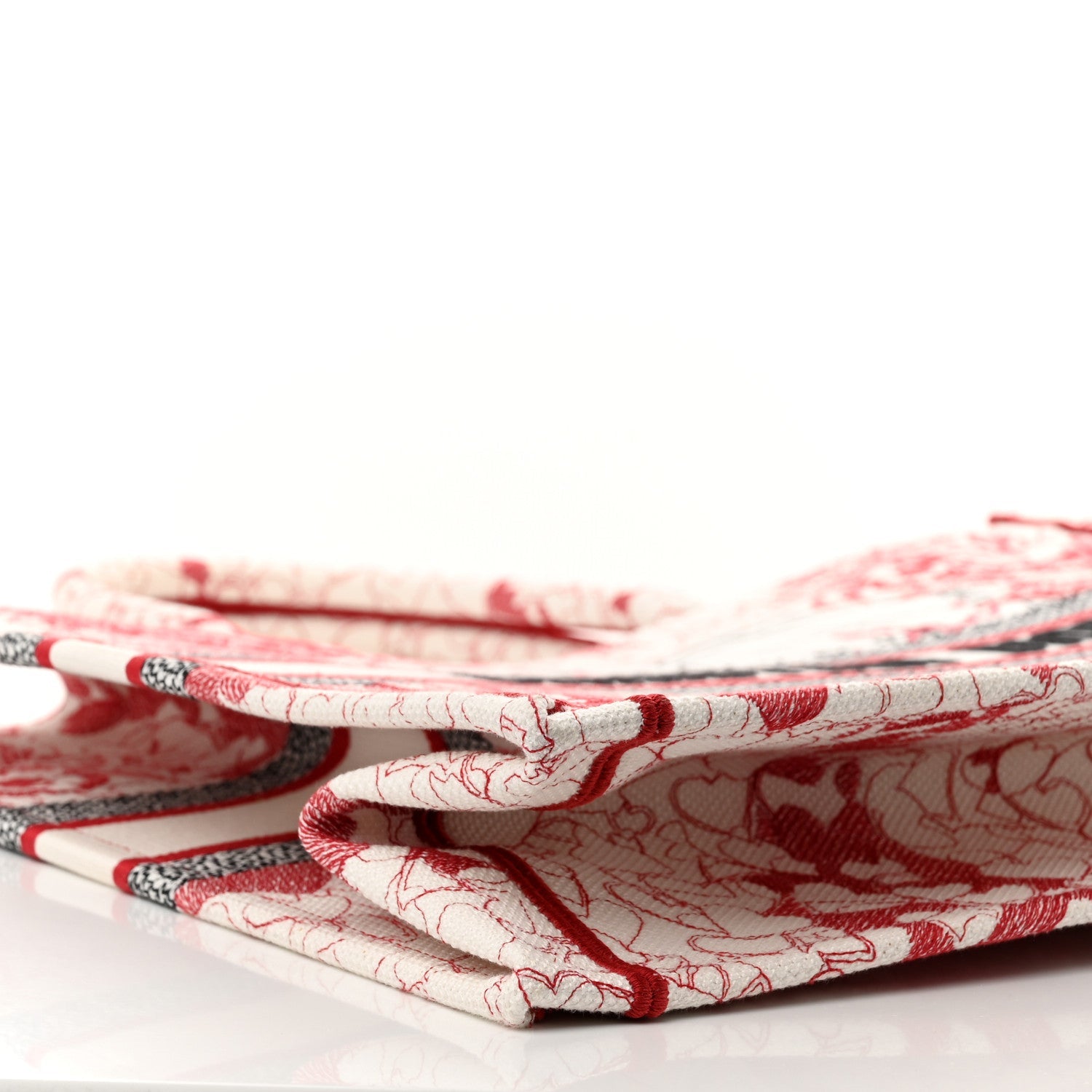 Canvas Embroidered Large Dioramour D-Royaume Book Tote Red Multicolor