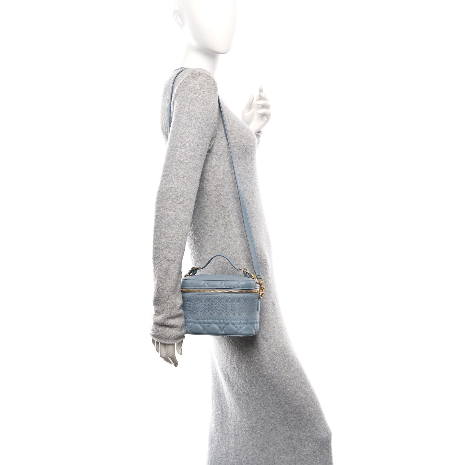 Lambskin Cannage Small Diortravel Vanity Case Cloud Blue